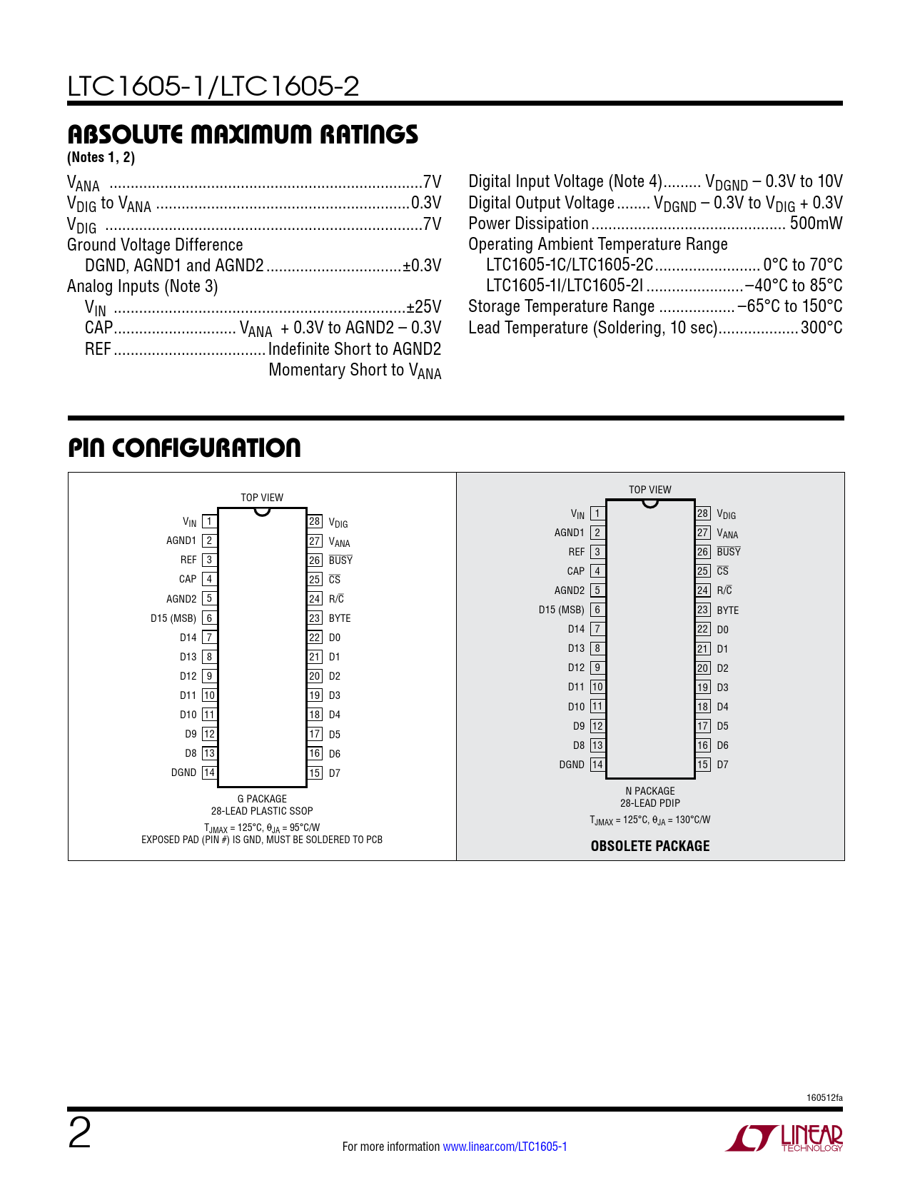 Datasheet LTC1605-1, LTC1605-2 (Analog Devices) - 2