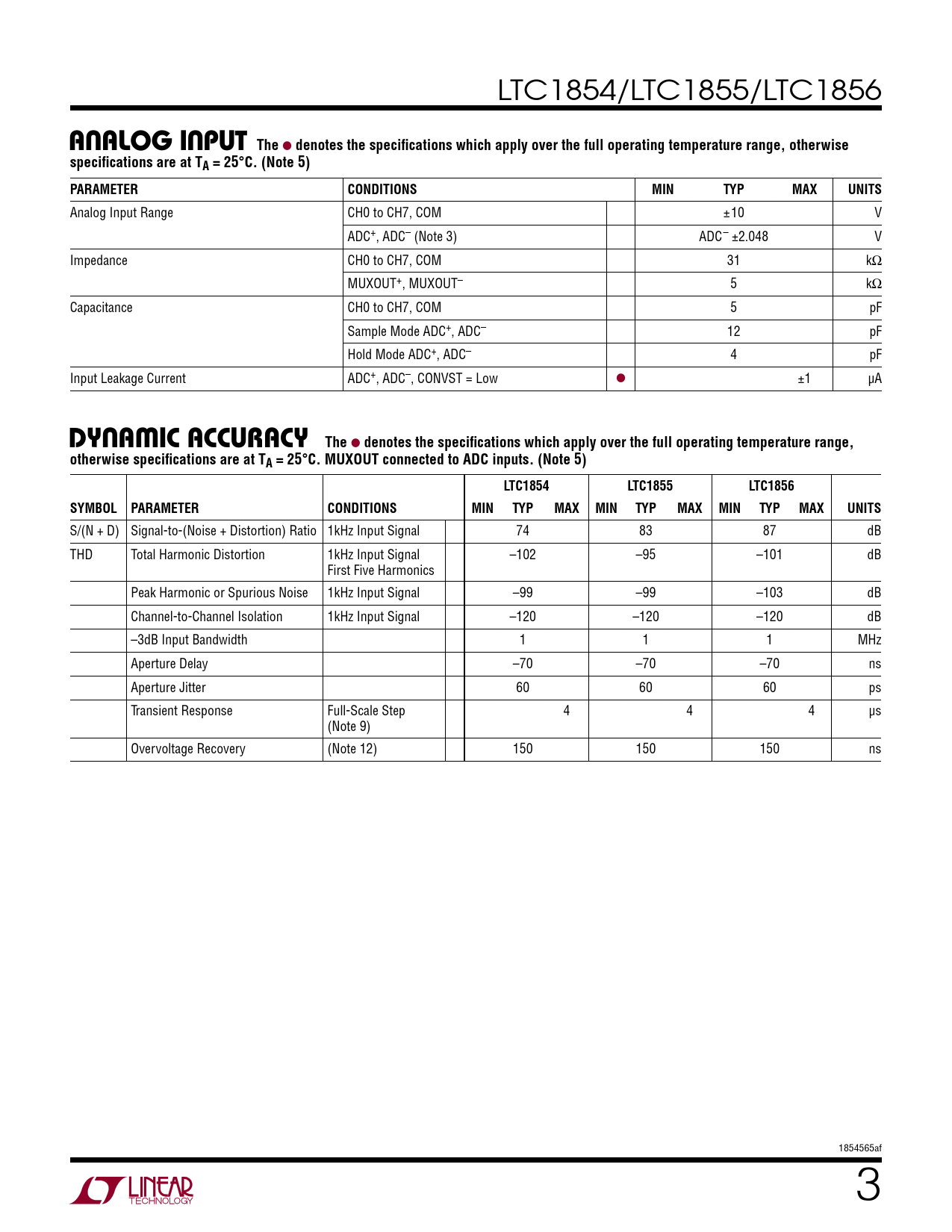 Datasheet LTC1854, LTC1855, LTC1856 (Analog Devices) - 3
