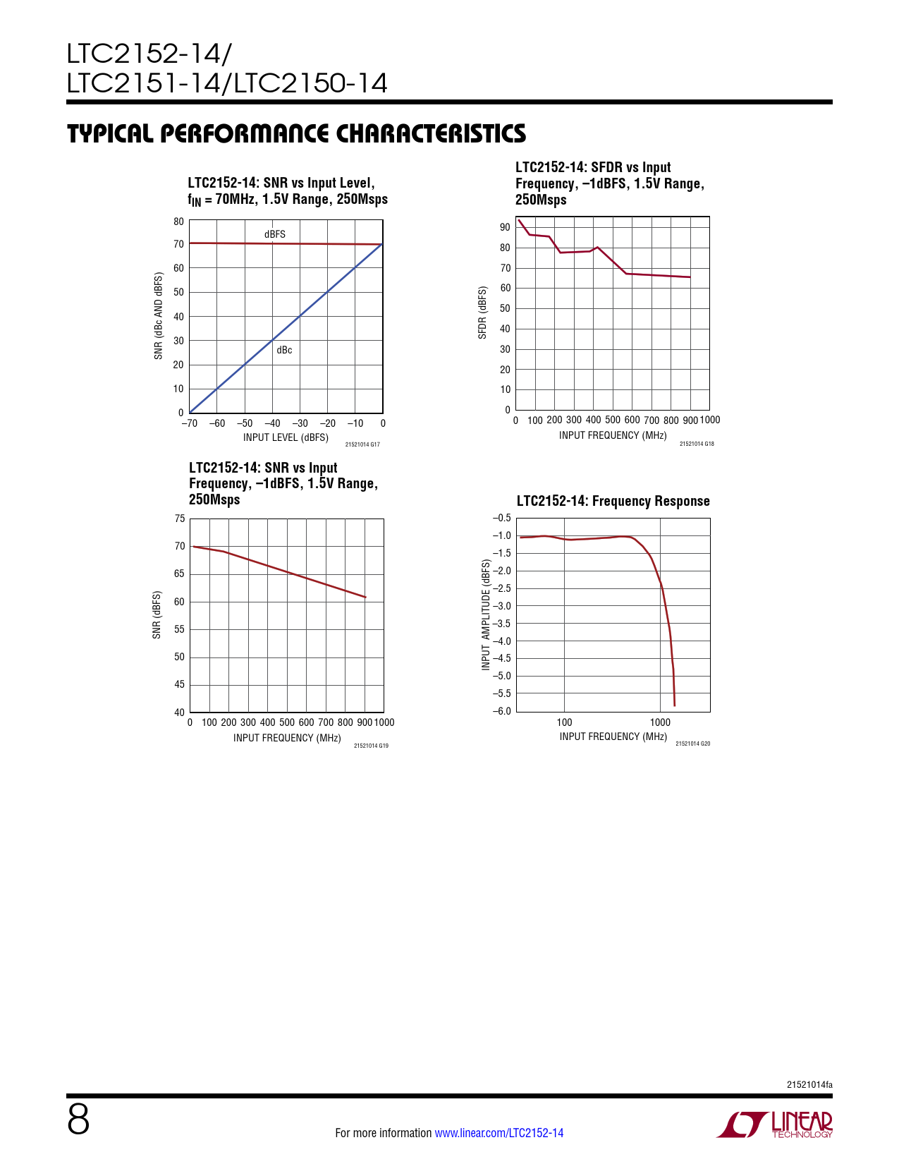 | 页数 / 页 | 32 / 8 — TYPICAL PERFORMANCE CHARACTERISTICS. LTC2152-14: SFDR vs Input. … |
