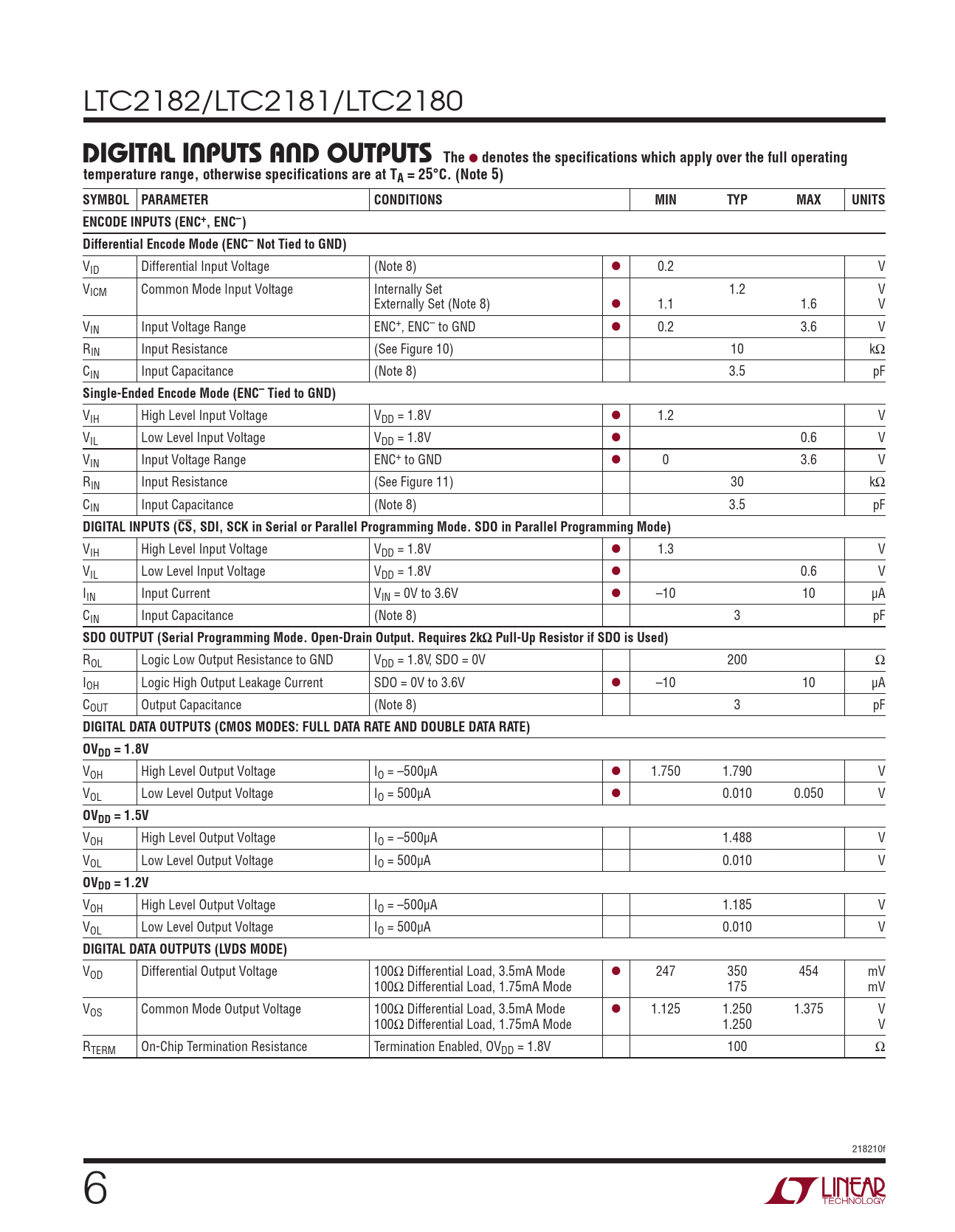 Datasheet LTC2182, LTC2181, LTC2180 (Analog Devices) - 6