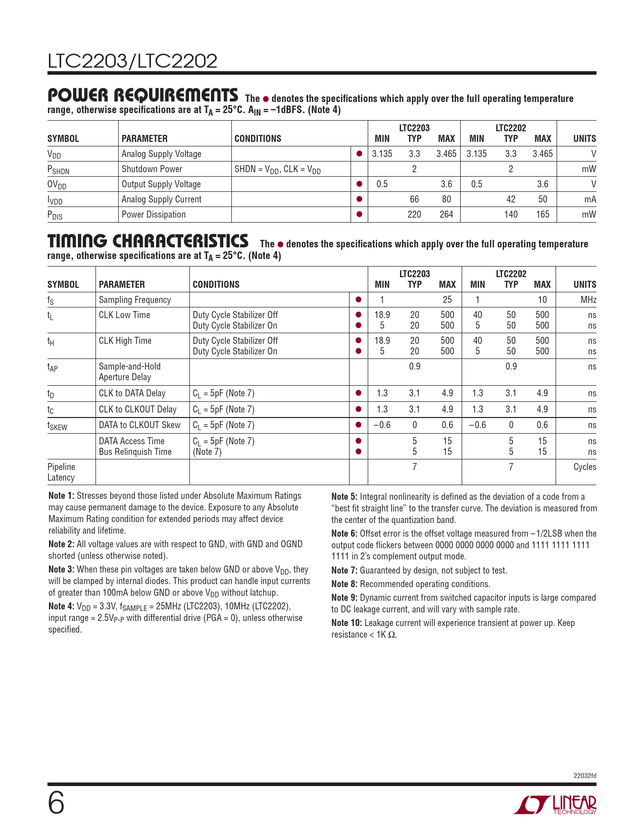 Datasheet LTC2203, LTC2202 (Analog Devices) - 6