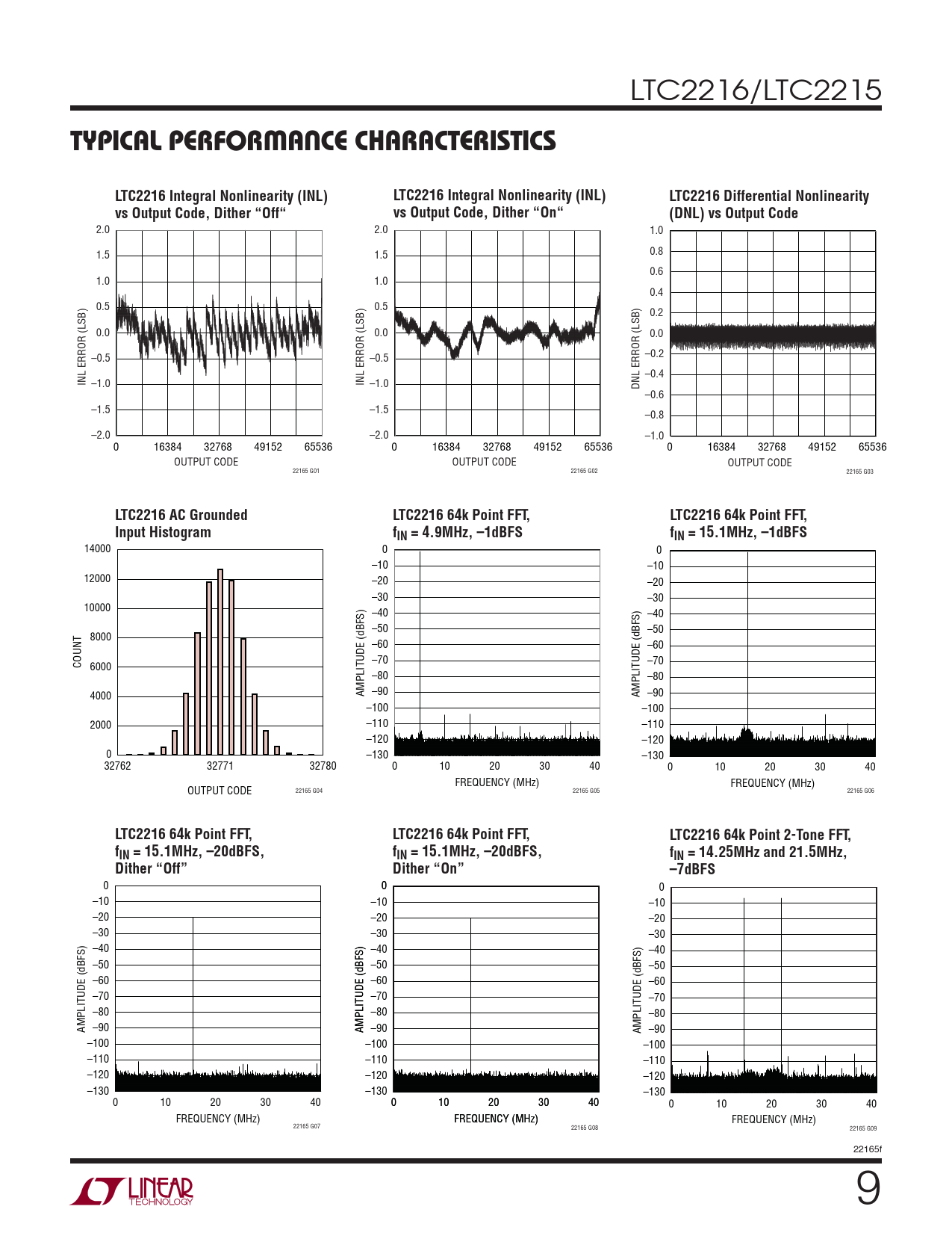 | 页数 / 页 | 36 / 9 — TYPICAL PERFORMANCE CHARACTERISTICS. LTC2216 Integral Nonlinearity (INL). … |