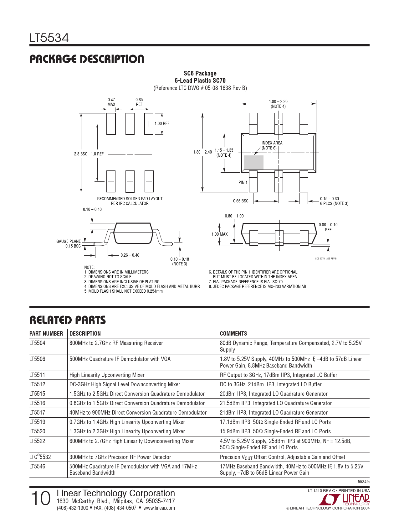 PACKAGE DESCRIPTION. SC6 Package. 6-Lead Plastic SC70. RELATED PARTS PART NUMBER DESCRIPTION. COMMENTS
