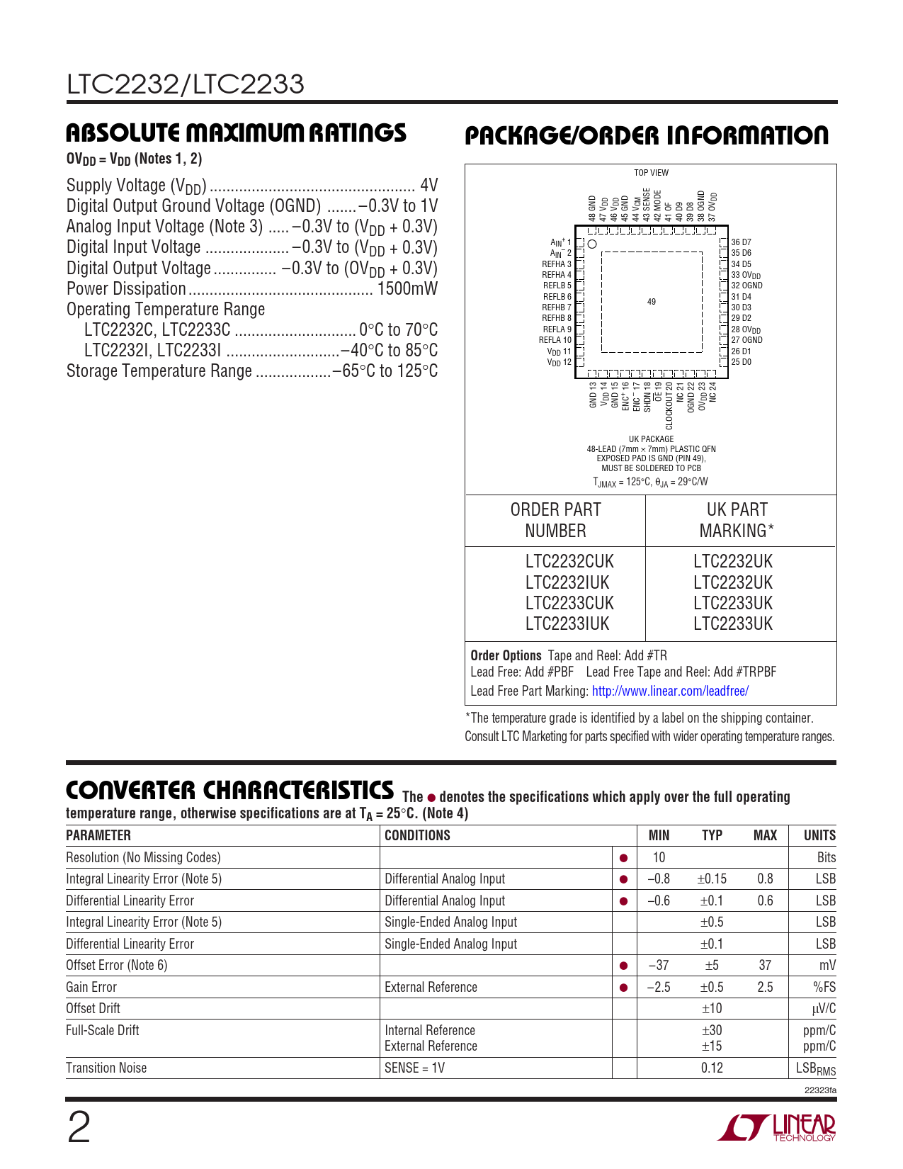 Datasheet LTC2232, LTC2233 (Analog Devices) - 2