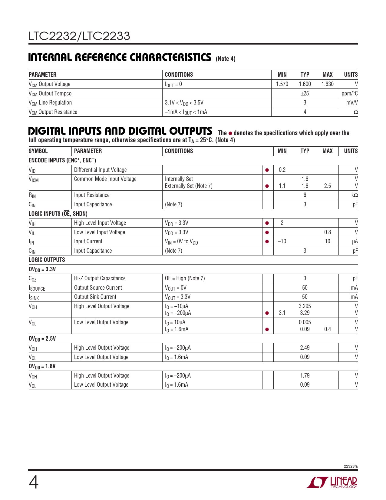 Datasheet LTC2232, LTC2233 (Analog Devices) - 4
