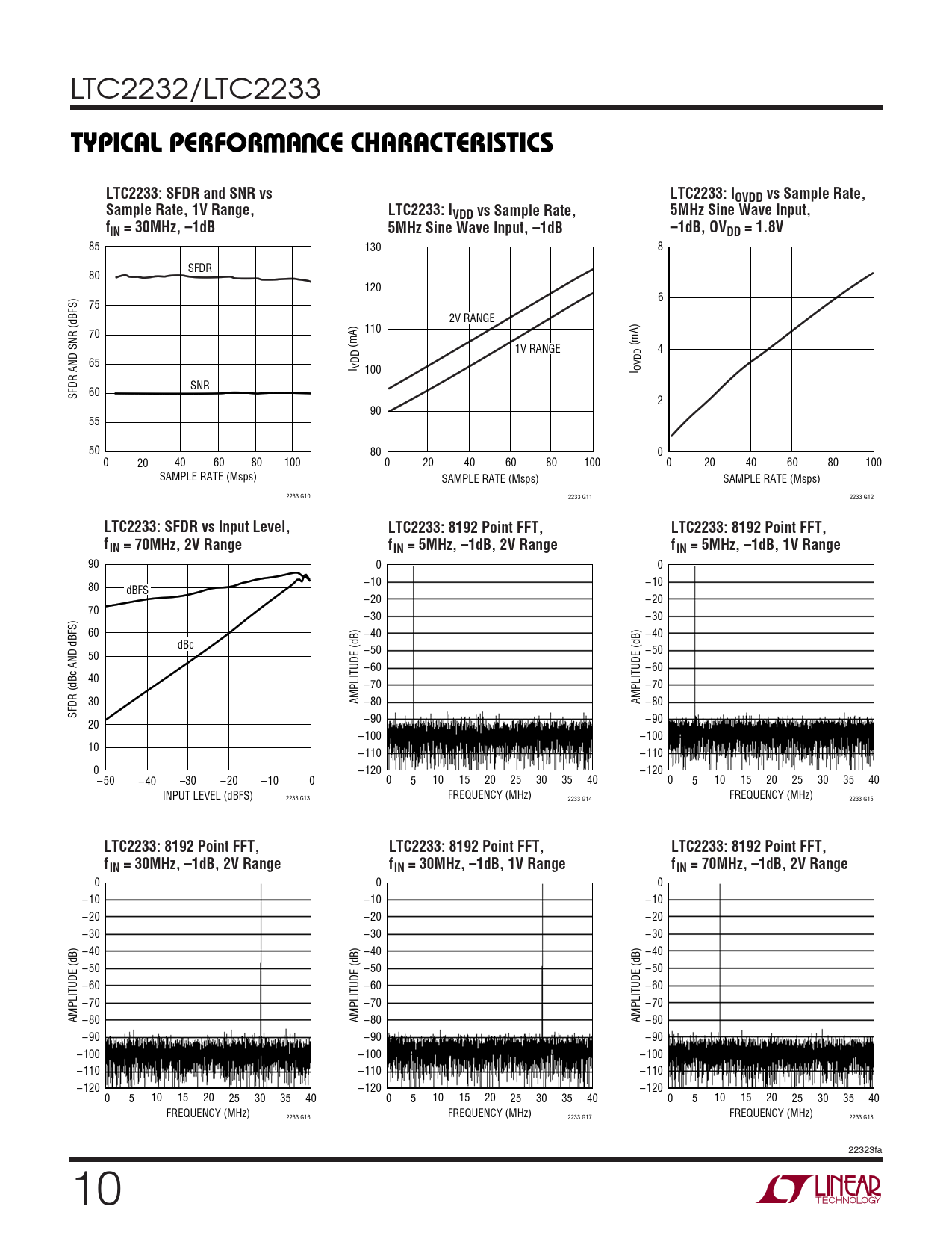 0 0 0 – 10 – 10 – 10 – 20 – 20 – 20 – 30 – 30 – 30 – 40 – 40 – 40 – 50 – 50 – 50 – 60 – 60 – 60 – 70 – 70 – 70 AMPLITUDE (dB) –80 AMPLITUDE (dB) –80 AMPLITUDE (dB) –80 – 90 – 90 – 90 – 100 – 100 – 100 – 110 – 110 – 110 – 120 – 120 – 120 0 5 10 15 20 25 30 35 40 0 5 10 15 20 25 30 35 40 0 5 10 15 20 25 30 35 40 FREQUENCY (MHz) FREQUENCY (MHz) FREQUENCY (MHz) 2233 G16 2233 G17 2233 G18 22323fa 10