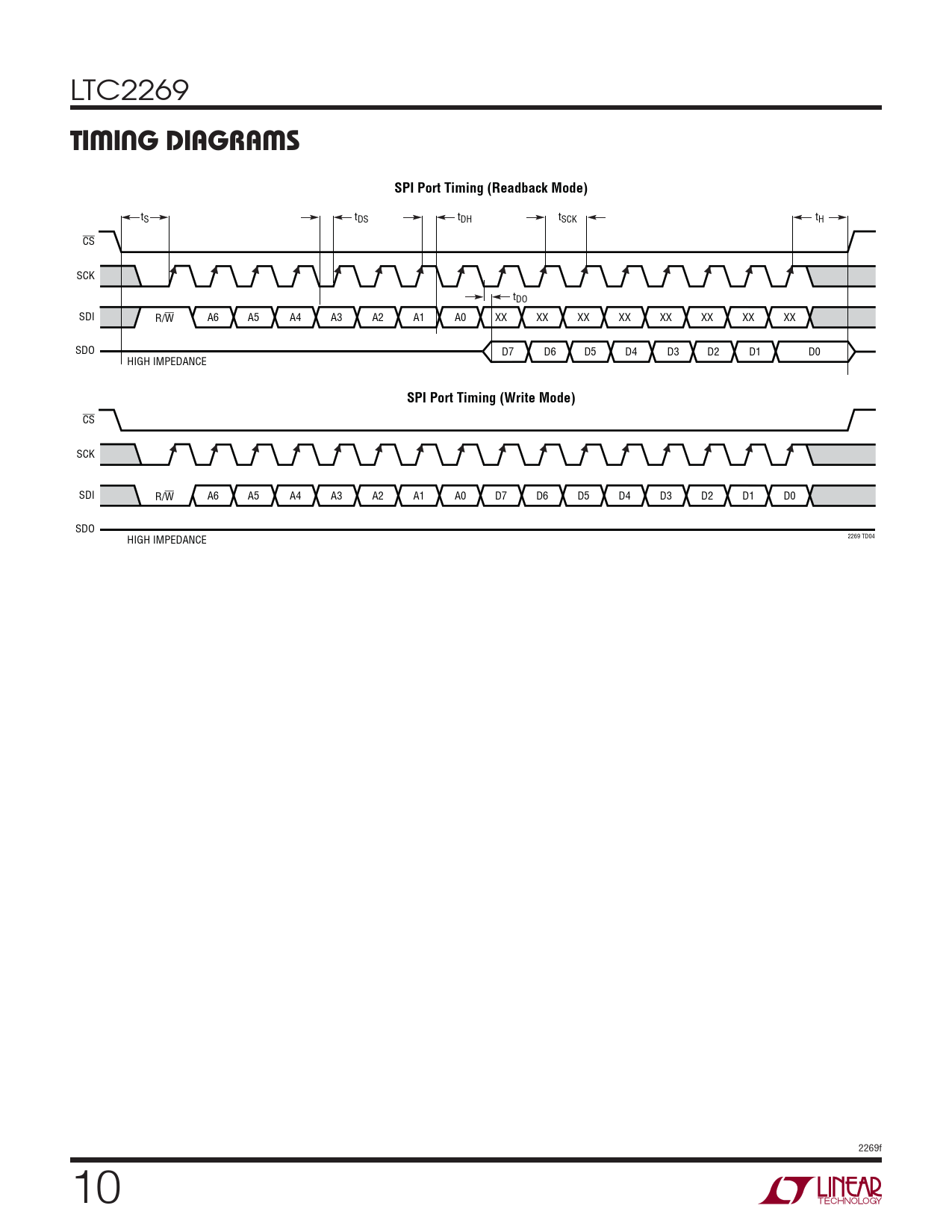 CS SCK SDI R/W A6 A5 A4 A3 A2 A1 A0 D7 D6 D5 D4 D3 D2 D1 D0 SDO 2269 TD04 HIGH IMPEDANCE 2269f 10