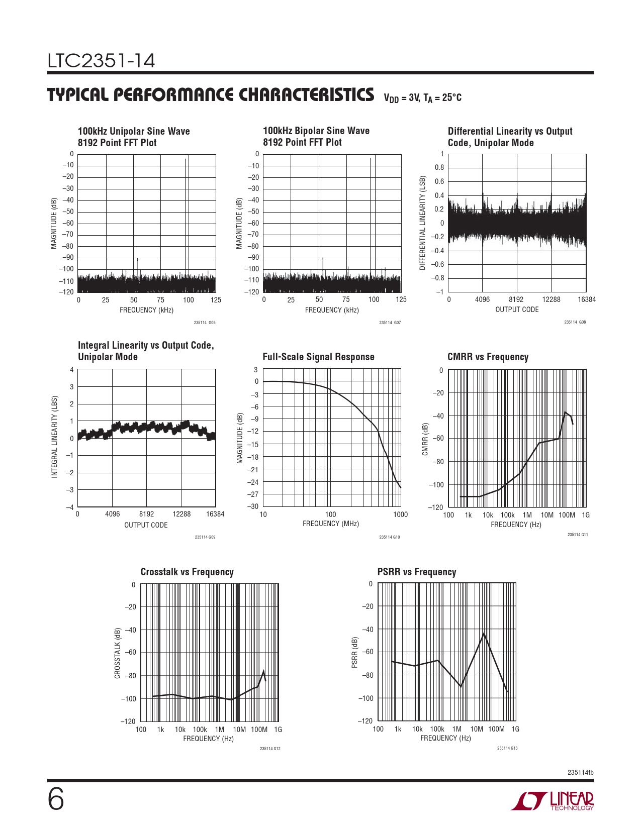 0 0 –20 –20 –40 –40 –60 –60 PSRR (dB) CROSSTALK (dB) –80 –80 –100 –100 –120 –120 100 1k 10k 100k 1M 10M 100M 1G 100 1k 10k 100k 1M 10M 100M 1G FREQUENCY (Hz) FREQUENCY (Hz) 235114 G12 235114 G13 235114fb 6
