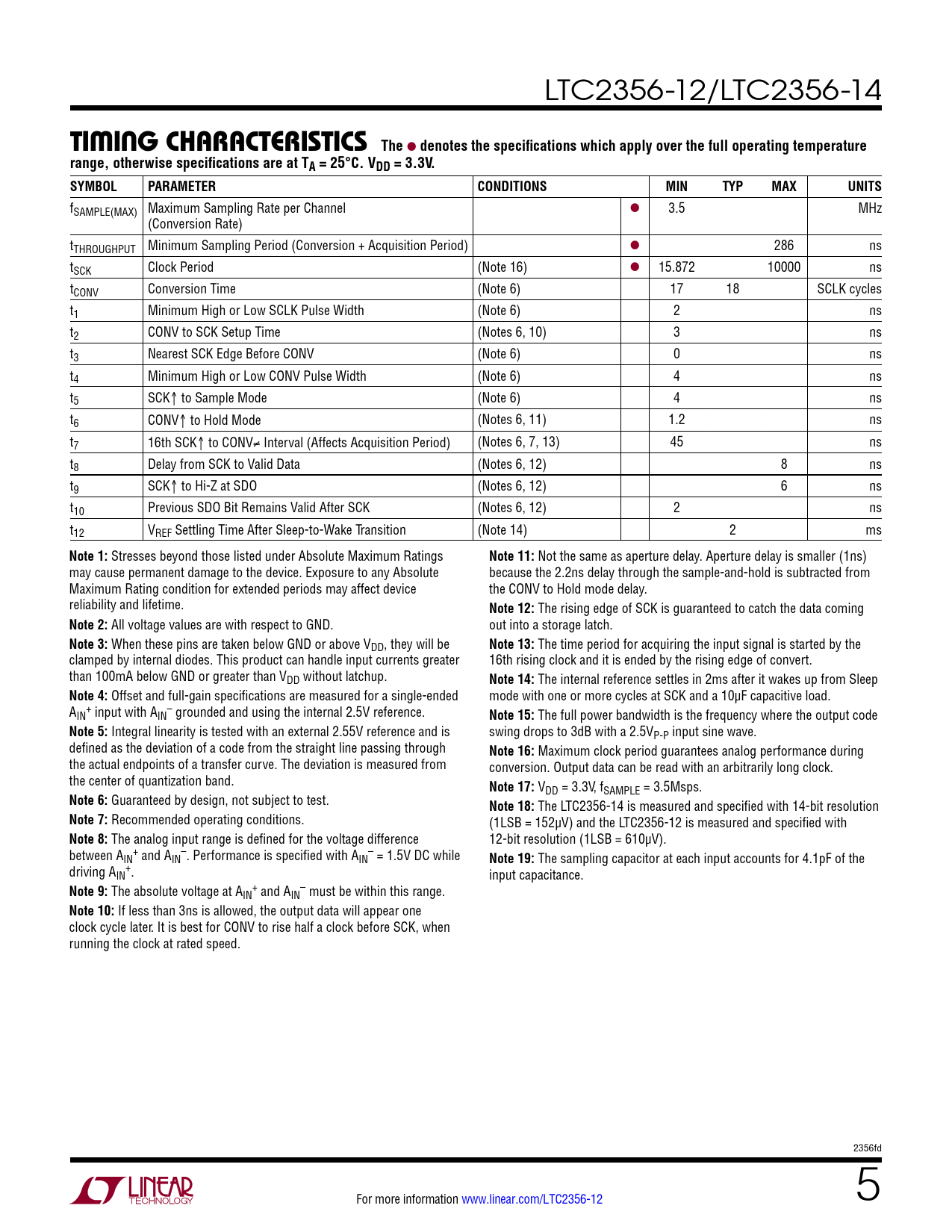 Datasheet LTC2356-12, LTC2356-14 (Analog Devices) - 5