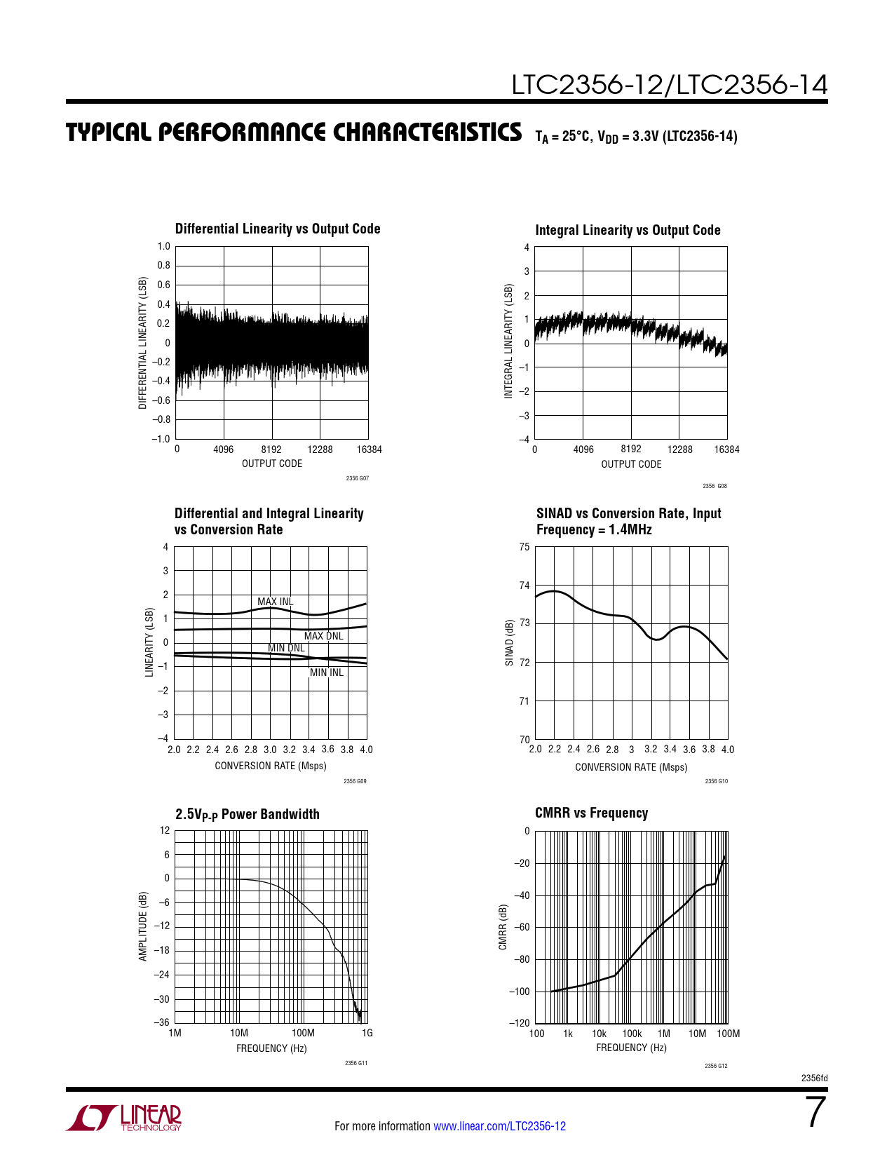 | 页数 / 页 | 20 / 7 — typical perFormance characteristics TA = 25°C, VDD = 3.3V (LTC2356-14). … |