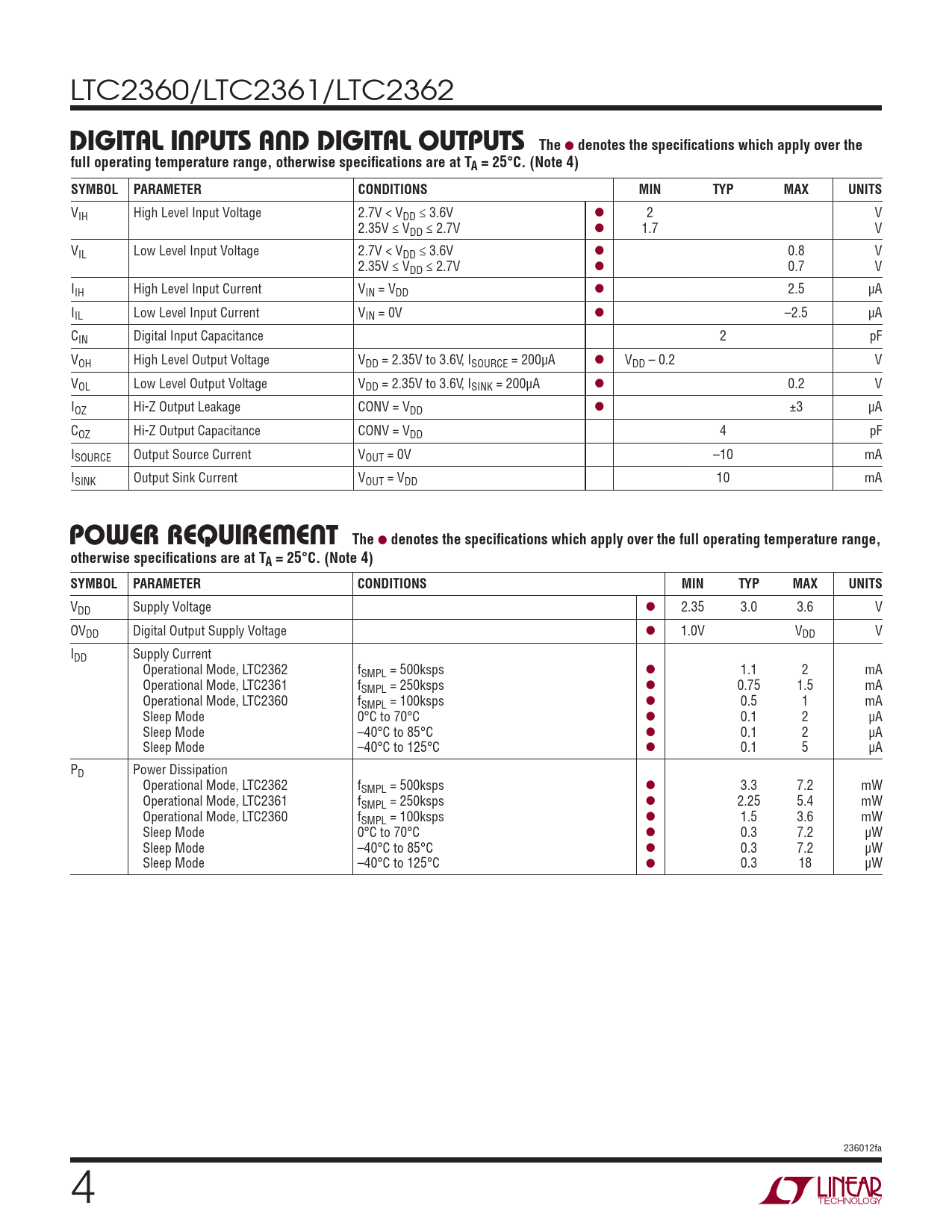 Datasheet LTC2360, LTC2361, LTC2362 (Analog Devices) - 4