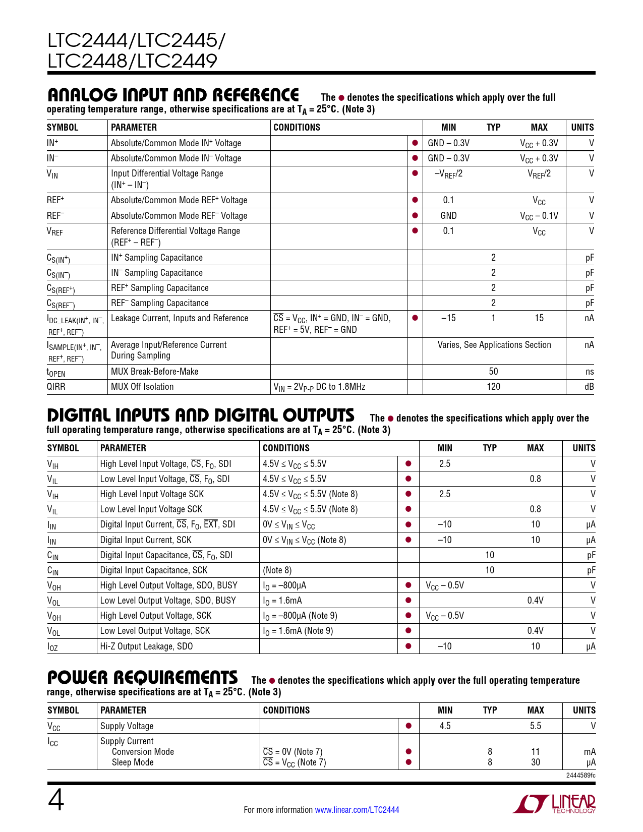 Datasheet LTC2444, LTC2445, LTC2448, LTC2449 (Analog Devices) - 4