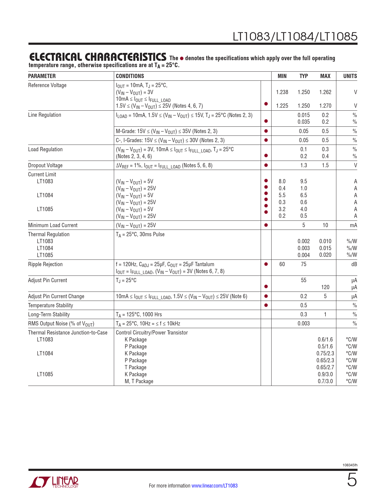 Datasheet LT1083, LT1084, LT1085 (Analog Devices) - 5