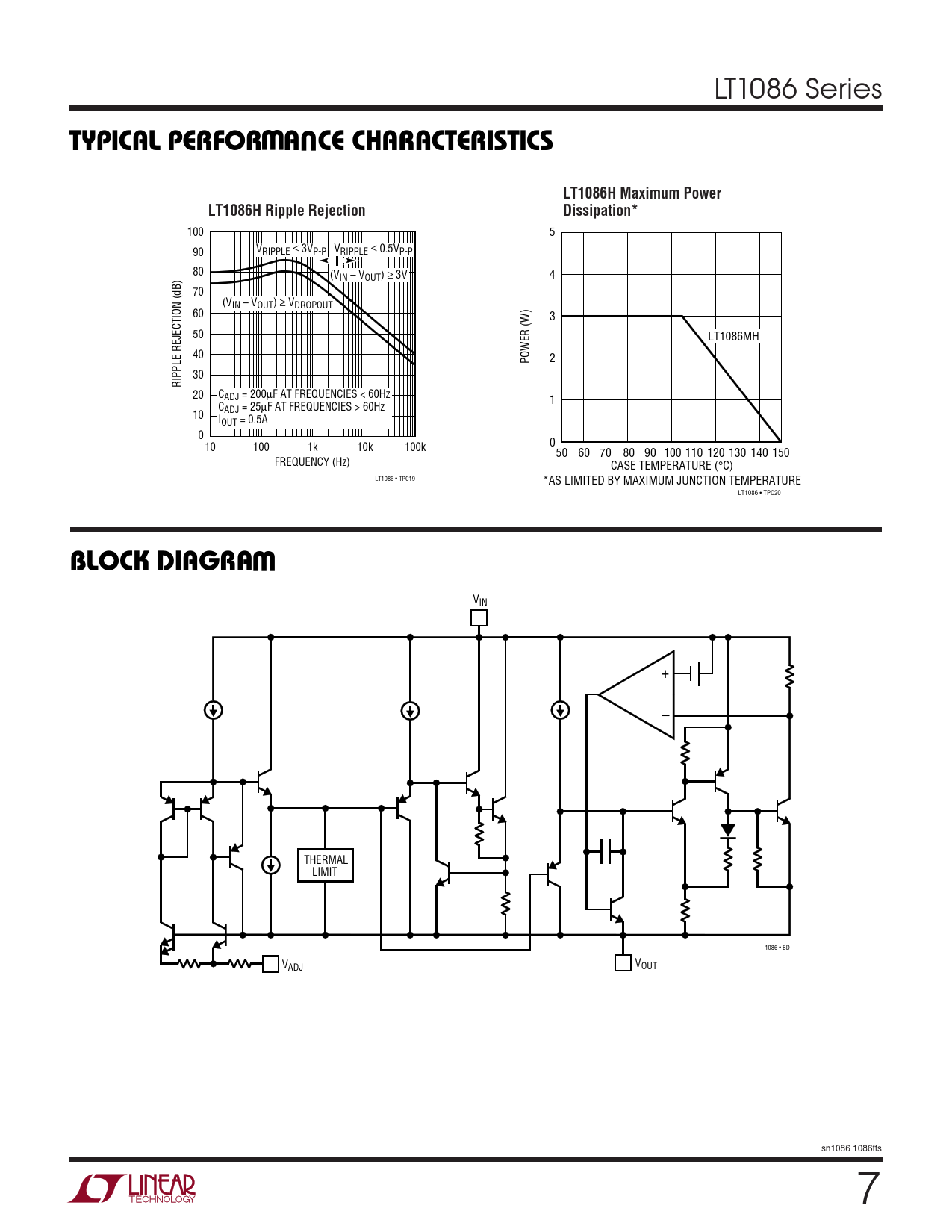 TYPICAL PERFORMANCE CHARACTERISTICS. LT1086H Maximum Power. LT1086H Ripple Rejection. Dissipation*. BLOCK DIAGRAM