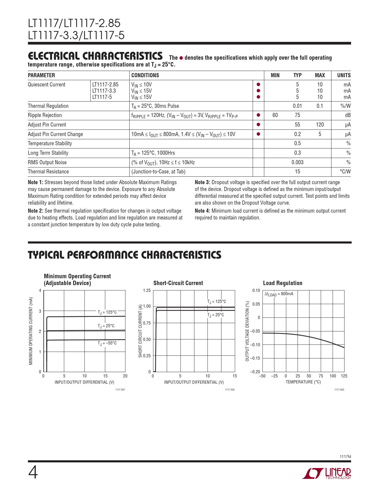 Datasheet LT1117, LT1117-2.85, LT1117-3.3, LT1117-5 (Analog Devices) - 4