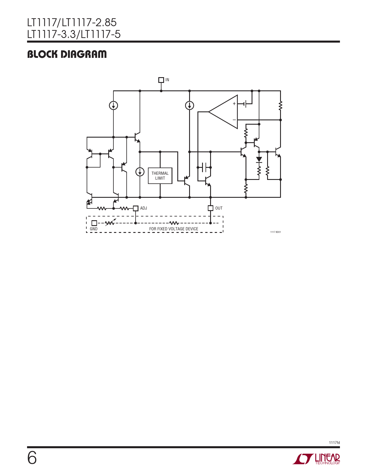 IN + – THERMAL LIMIT ADJ OUT GND FOR FIXED VOLTAGE DEVICE 1117 BD01 1117fd 6