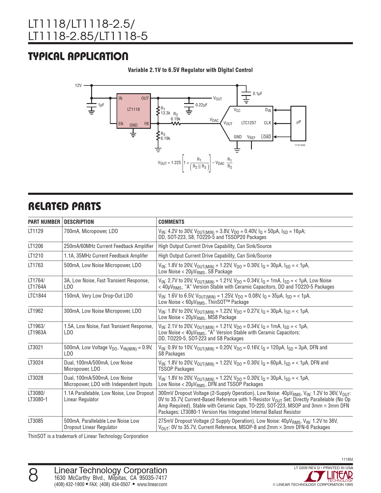 TYPICAL APPLICATION. Variable 2.1V to 6.5V Regulator with DIgital Control. RELATED PARTS. PART NUMBER DESCRIPTION. COMMENTS
