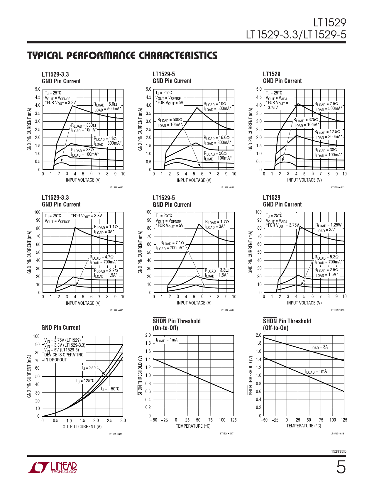 LT1529-3.3 LT1529-5 LT1529 GND Pin Current GND Pin Current GND Pin Current