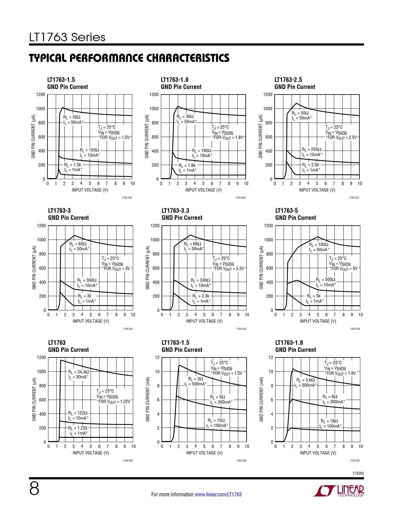 Typical perForMance characTerisTics. LT1763-1.5. LT1763-1.8. LT1763-2.5. GND Pin Current. LT1763-3. LT1763-3.3. LT1763-5. LT1763