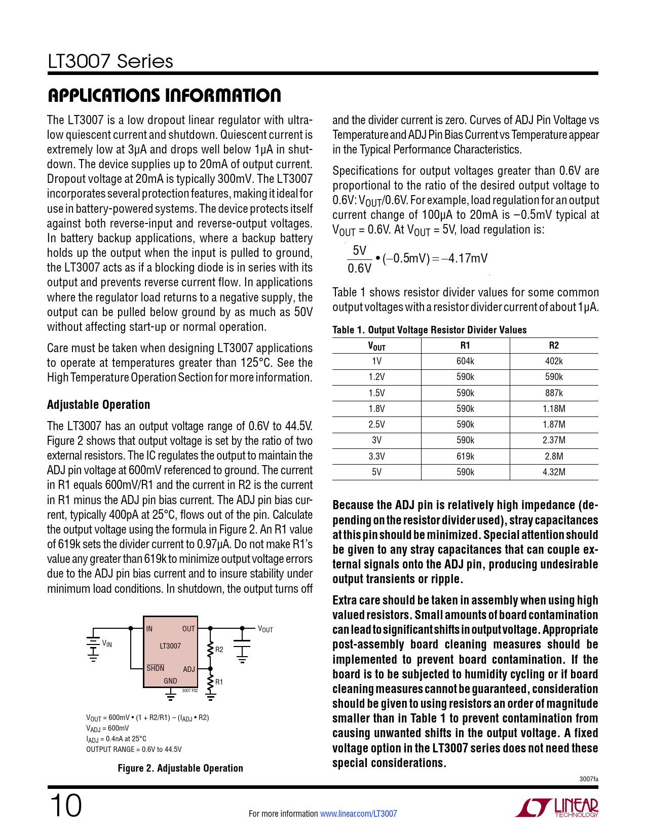 voltage option in the LT3007 series does not need these Figure 2. Adjustable Operation special considerations.