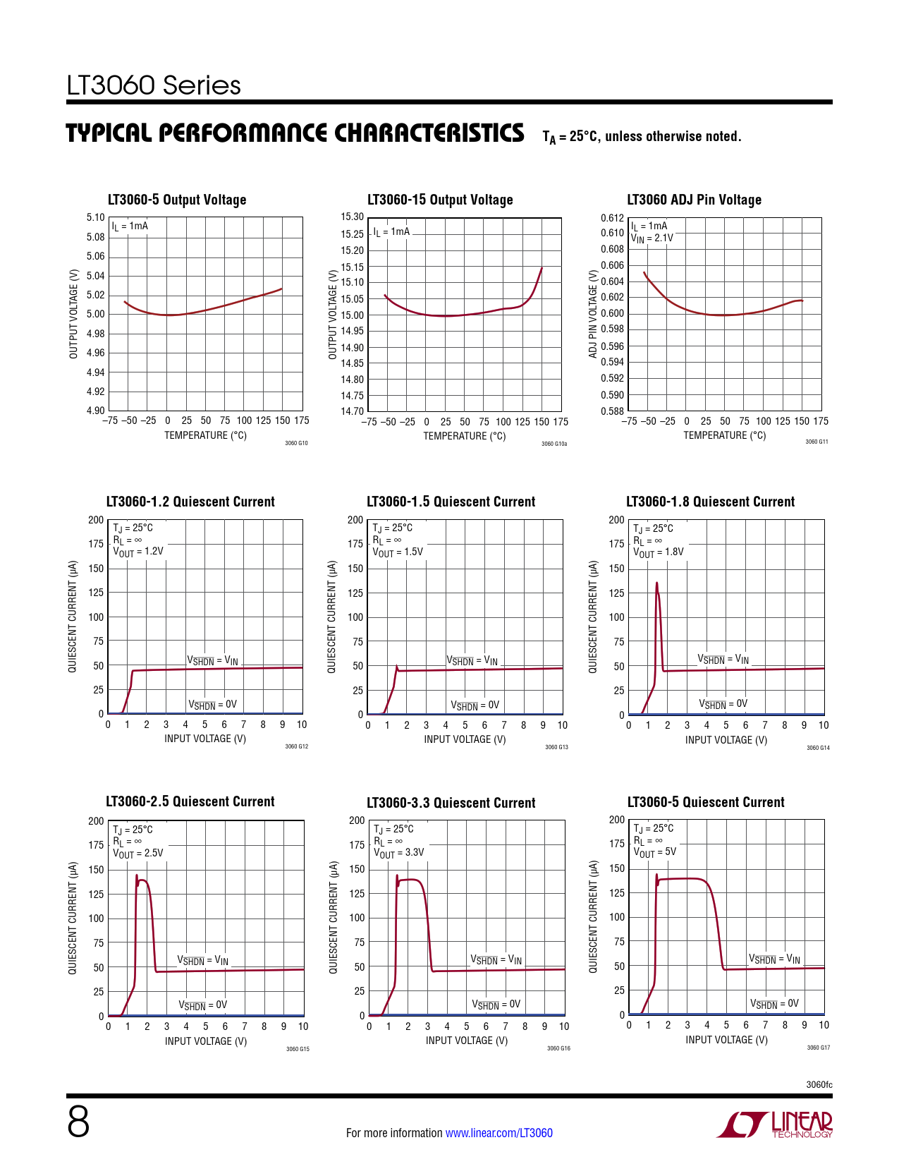 Typical perForMance characTerisTics TA = 25°C, unless otherwise noted. LT3060-5 Output Voltage. LT3060-15 Output Voltage