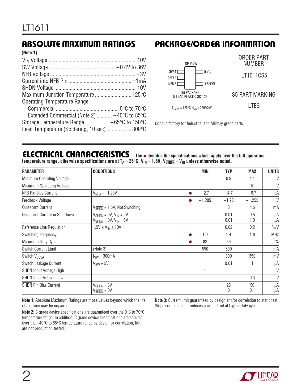 Datasheet LT1611 (Analog Devices) - 2