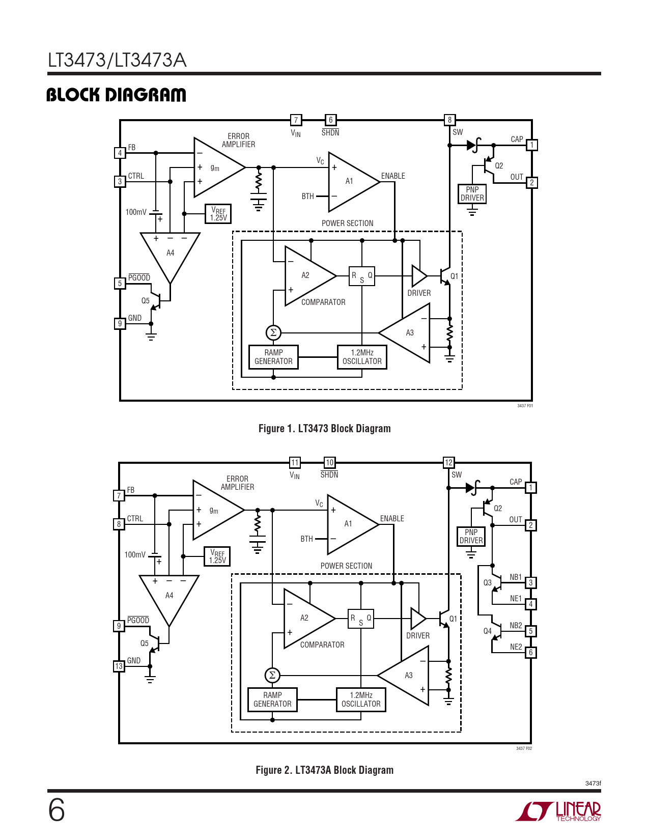 | 页数 / 页 | 12 / 6 — BLOCK DIAGRA. Figure 1. LT3473 Block Diagram. Figure 2. LT3473A Block … |