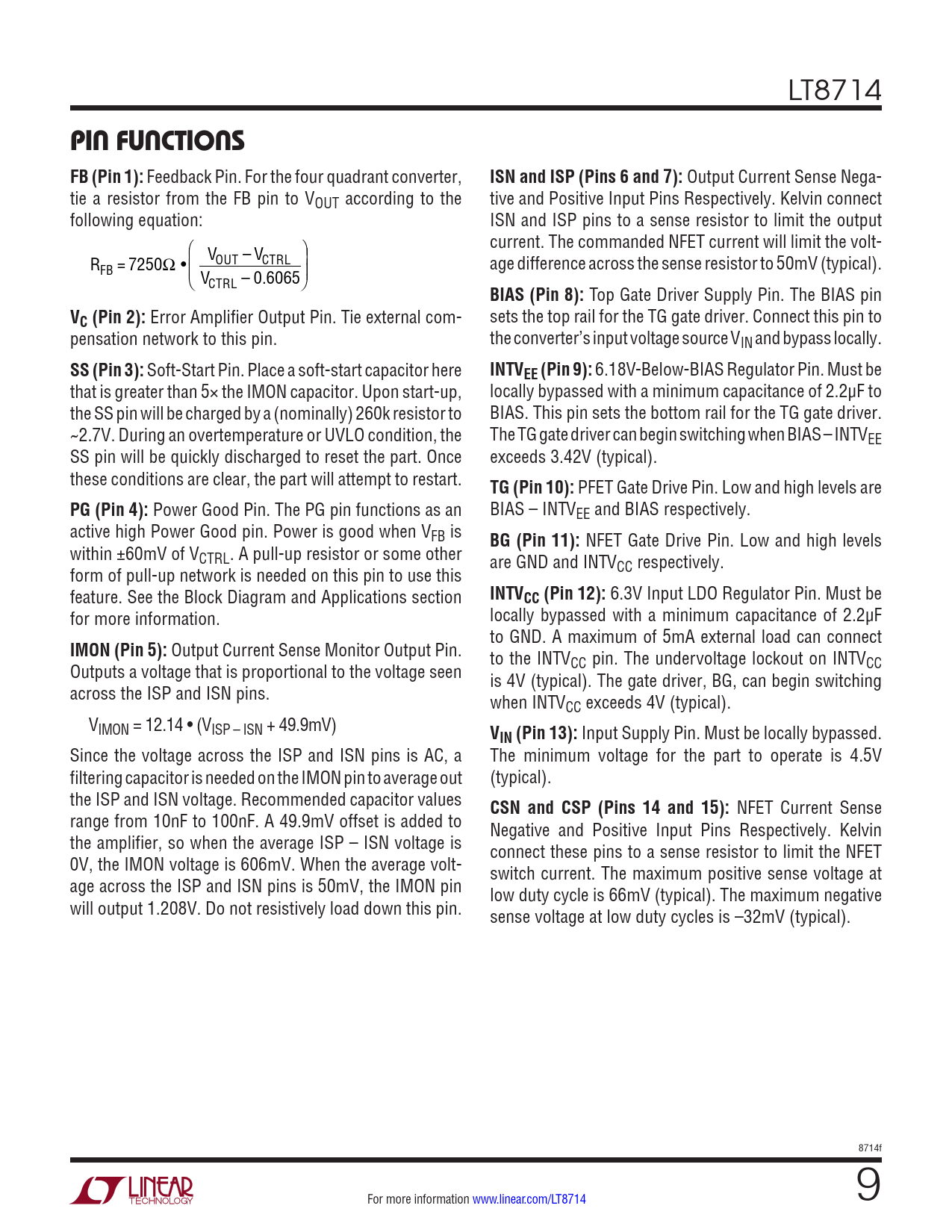 页数 / 页36 / 9 — PIN FUNCTIONS FB (Pin 1):. ISN and ISP (Pins 6 and 7):. BIAS (Pin 8):. VC …