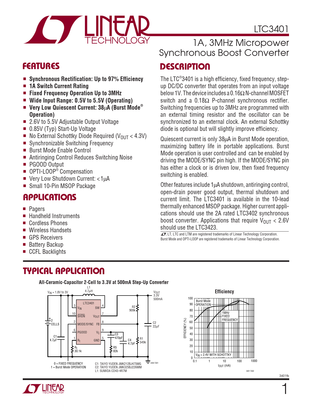 The LTC®3401 is a high efficiency, fixed frequency, step- ■