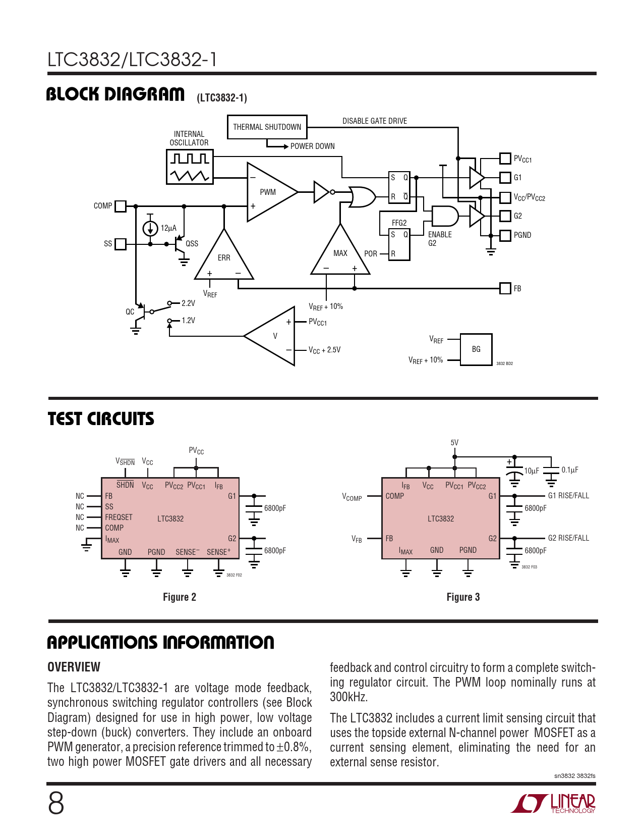 BLOCK DIAGRA (LTC3832-1). TEST CIRCUITS. Figure 2. Figure 3. APPLICATIO S I FOR ATIO. OVERVIEW