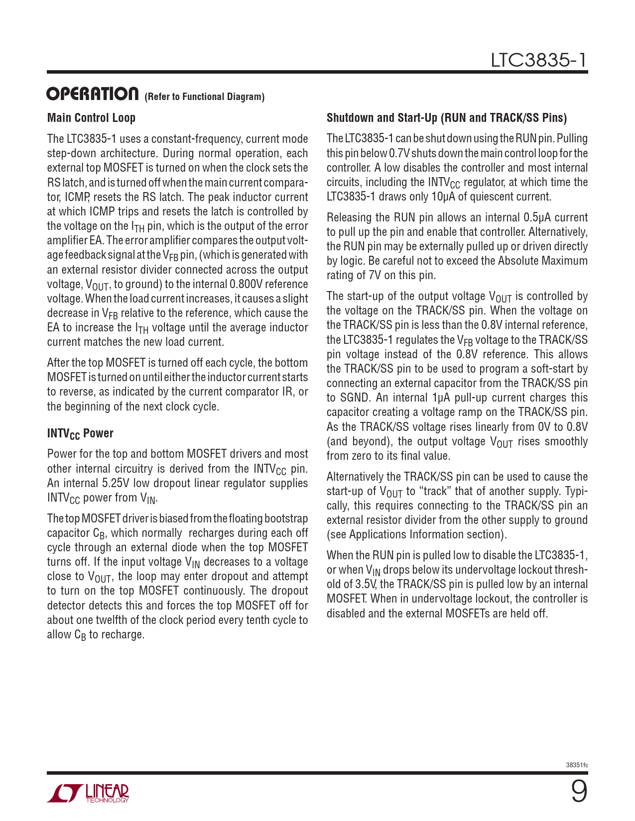 OPERATION (Refer to Functional Diagram). Main Control Loop. Shutdown and Start-Up (RUN and TRACK/SS Pins). INTVCC Power