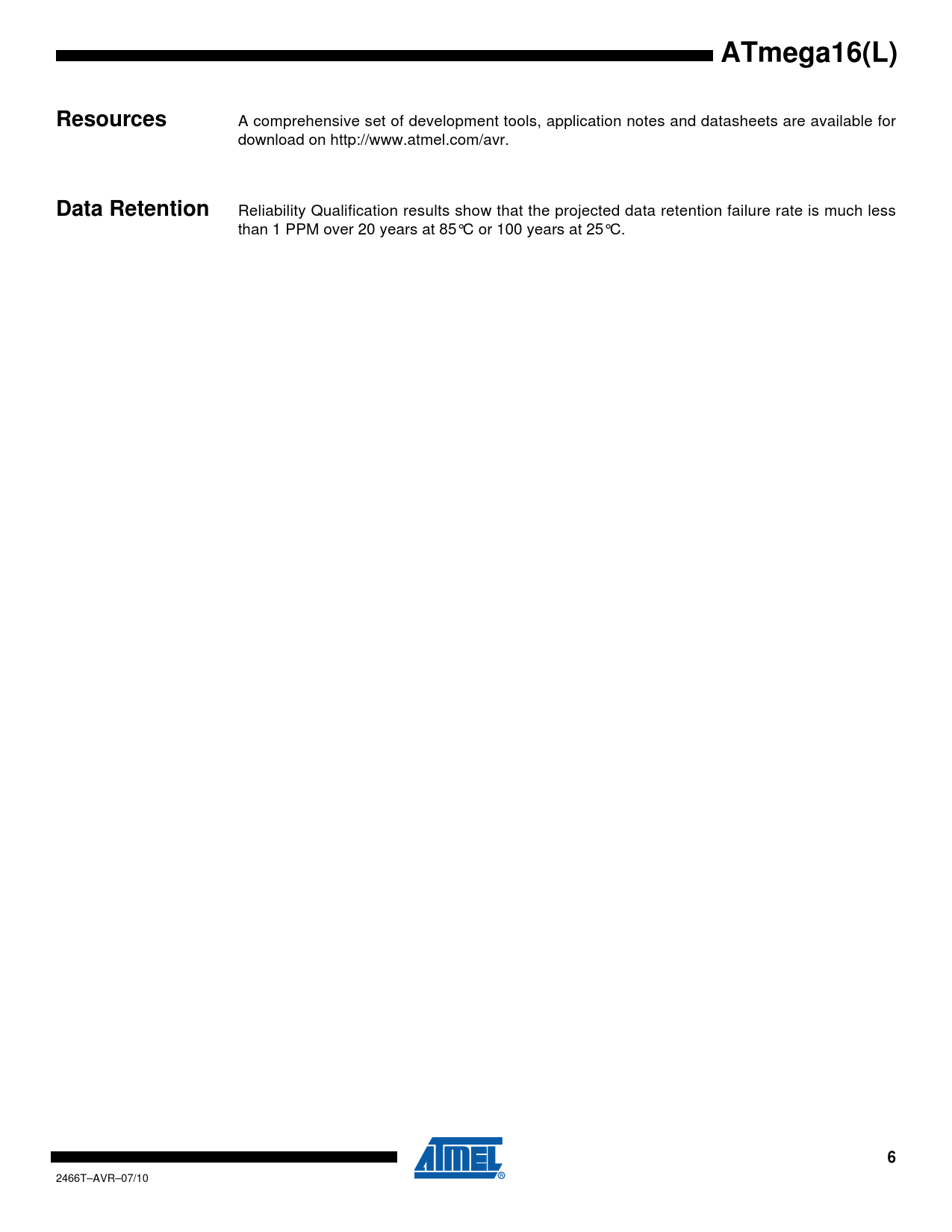 ATmega16(L). Resources. Data Retention