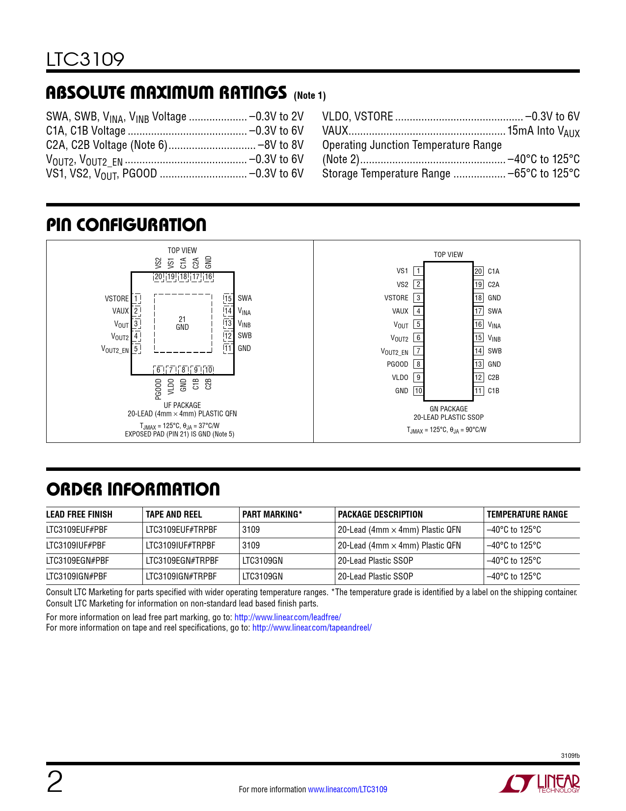 页数 / 页24 / 2 — absoluTe MaxiMuM raTings (Note 1). pin conFiguraTion. orDer inForMaTion …