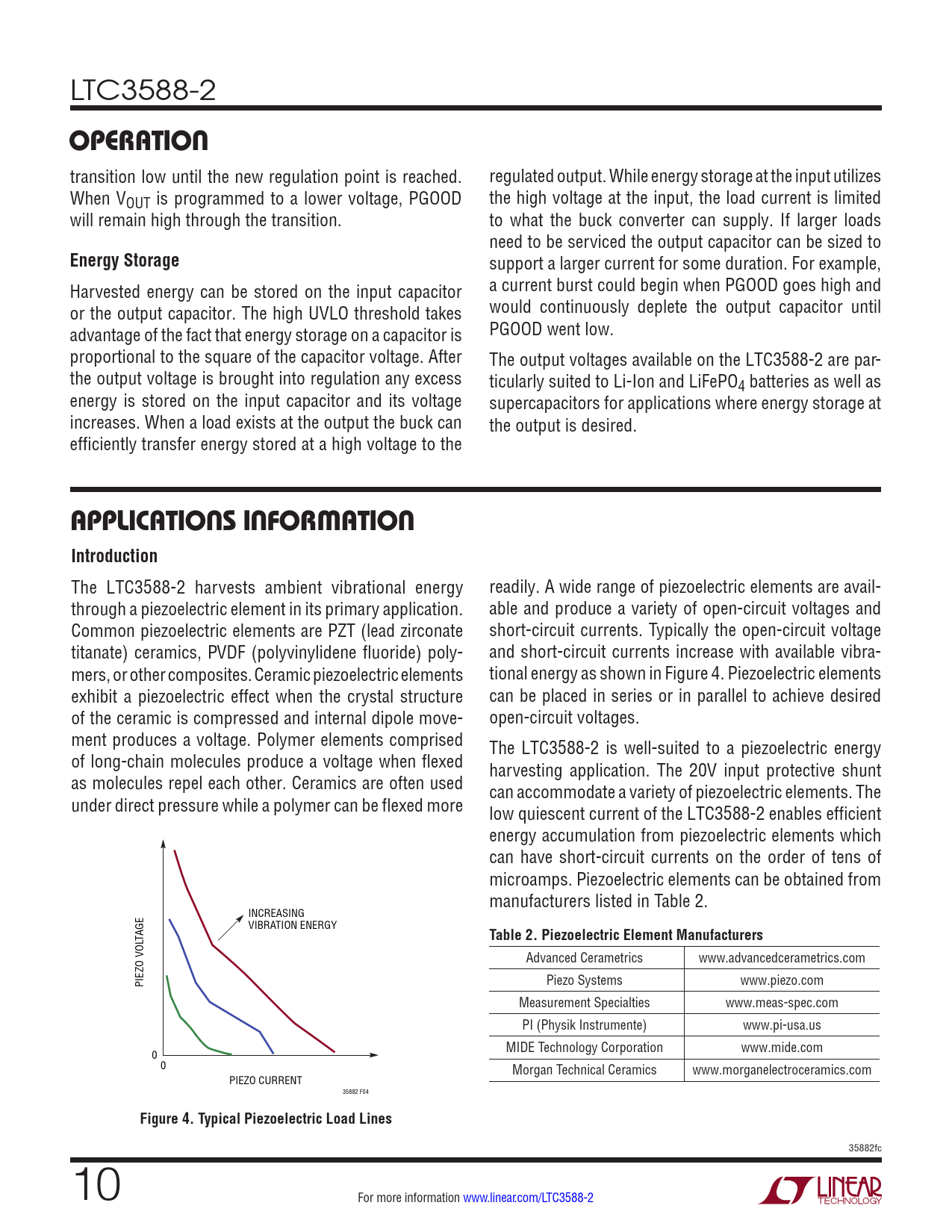OPERATION. Energy Storage. APPLICATIONS INFORMATION. Introduction. Table 2. Piezoelectric Element Manufacturers