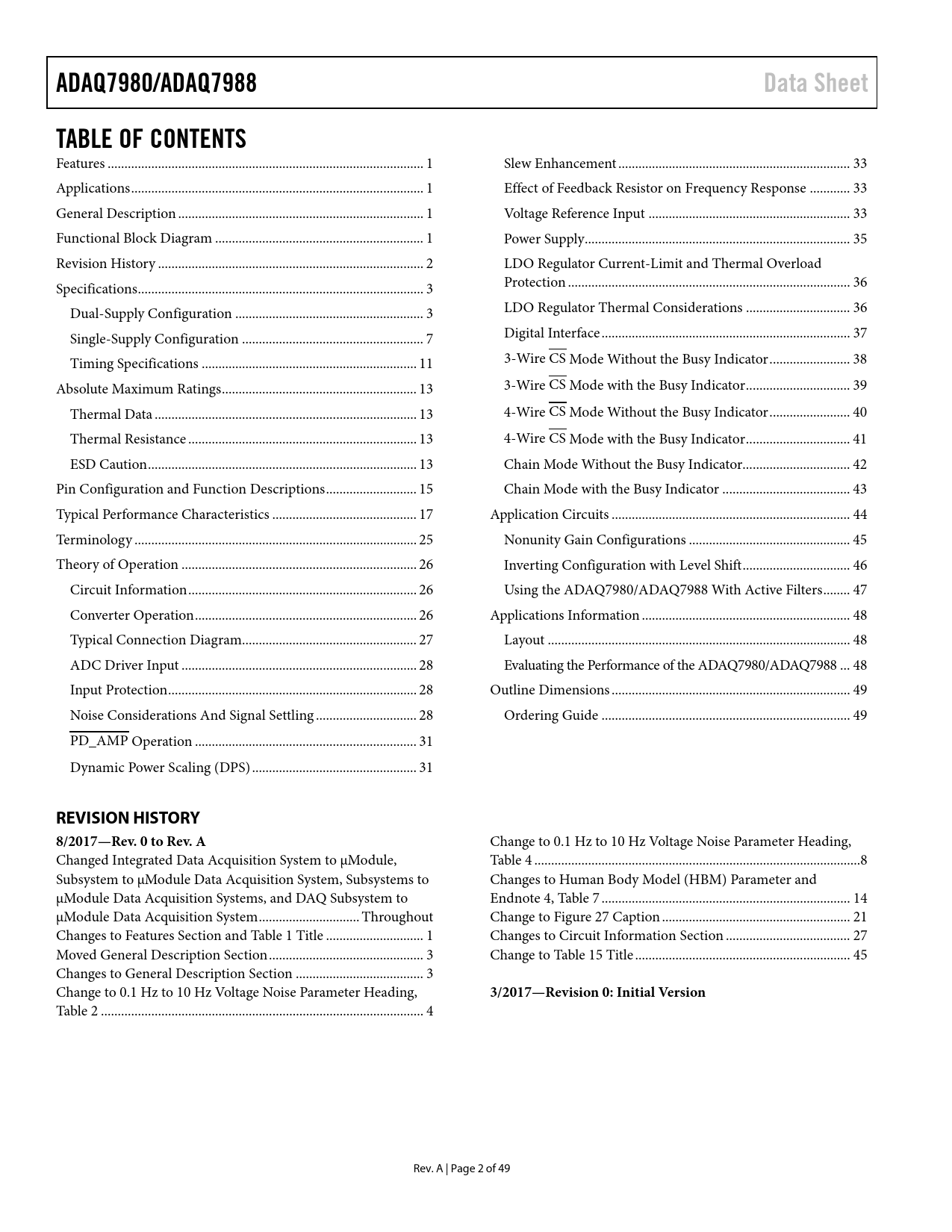 页数 / 页49 / 2 — ADAQ7980/ADAQ7988. Data Sheet. TABLE OF CONTENTS. REVISION HISTORY …