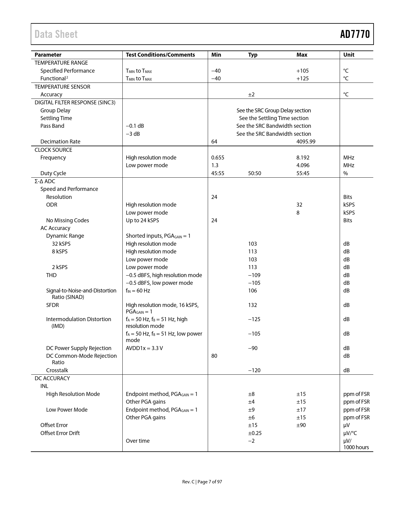 | 页数 / 页 | 98 / 8 — Data Sheet. AD7770. Parameter. Test Conditions/Comments. Min. Typ. Max. … |