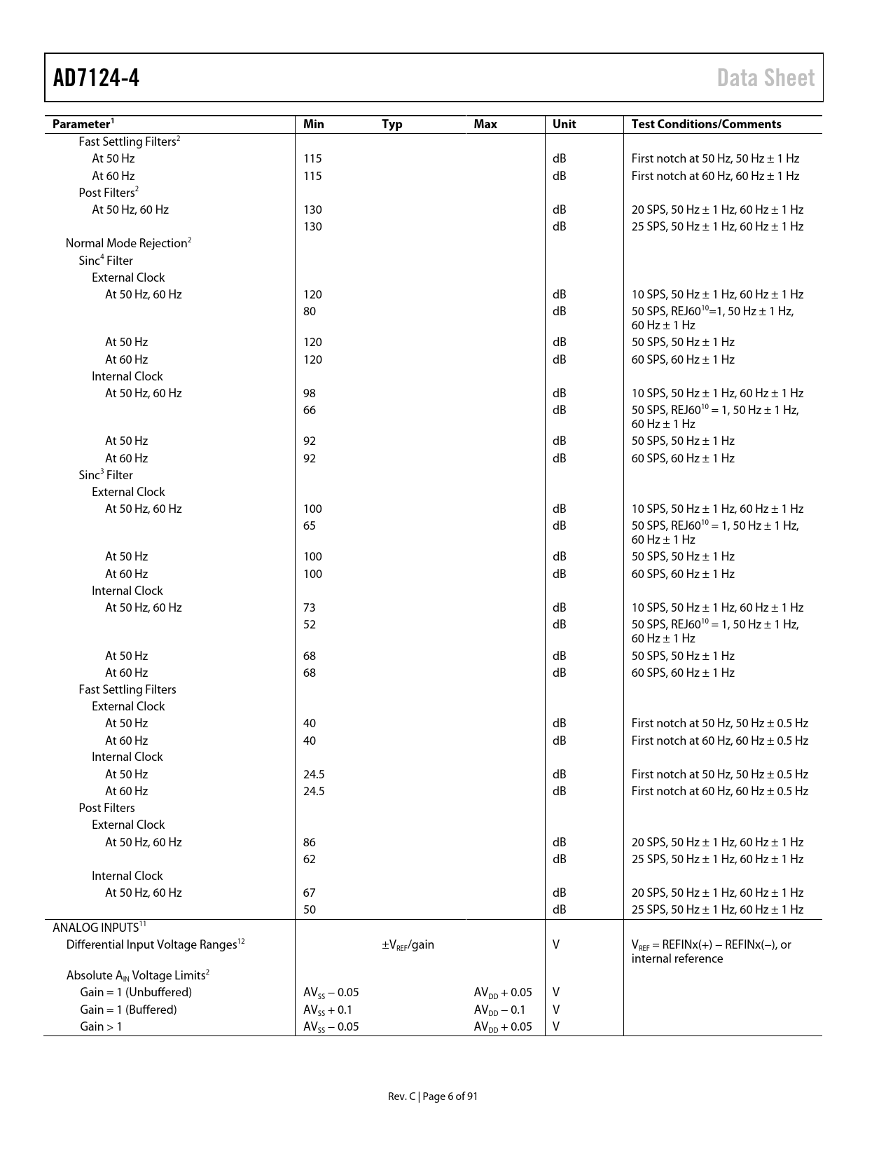 AD7124-4 Data Sheet Parameter1 Min Typ Max Unit Test Conditions/Comments