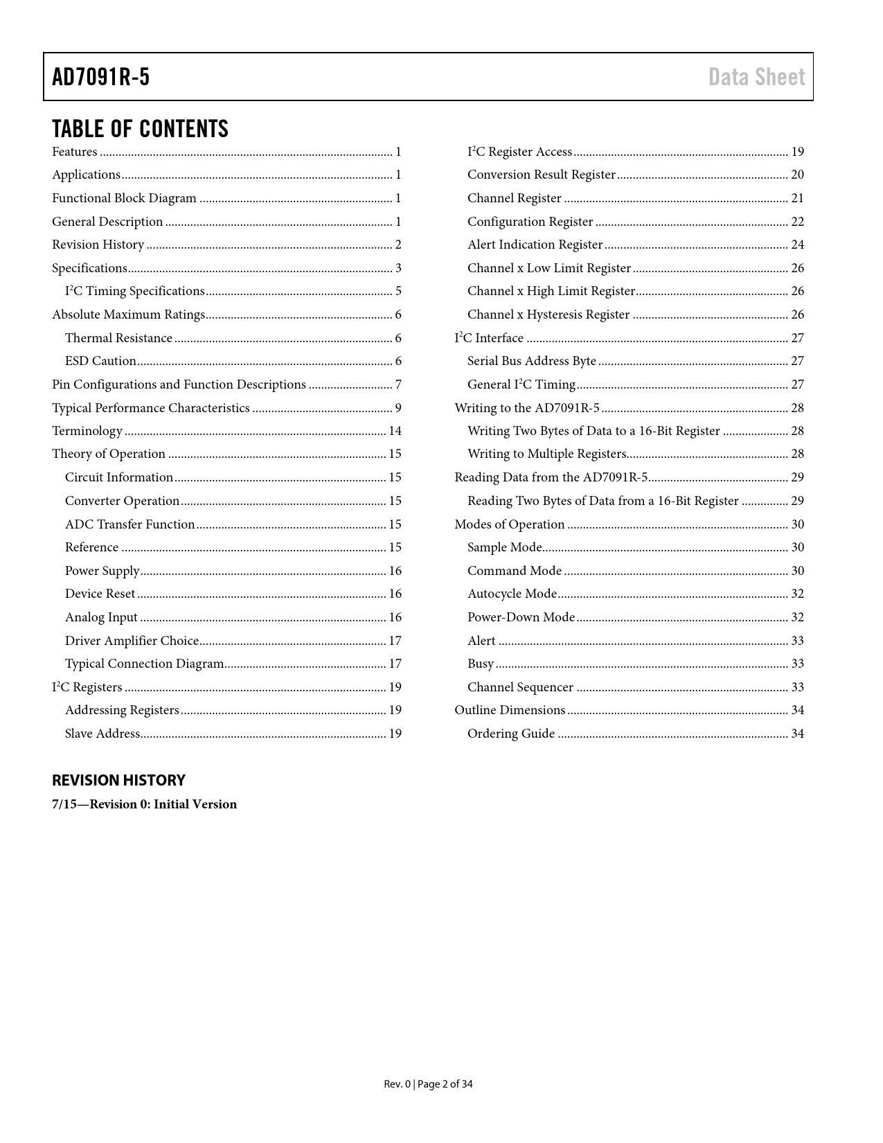 页数 / 页35 / 3 — AD7091R-5. Data Sheet. TABLE OF CONTENTS. REVISION HISTORY 7/15—Revision …