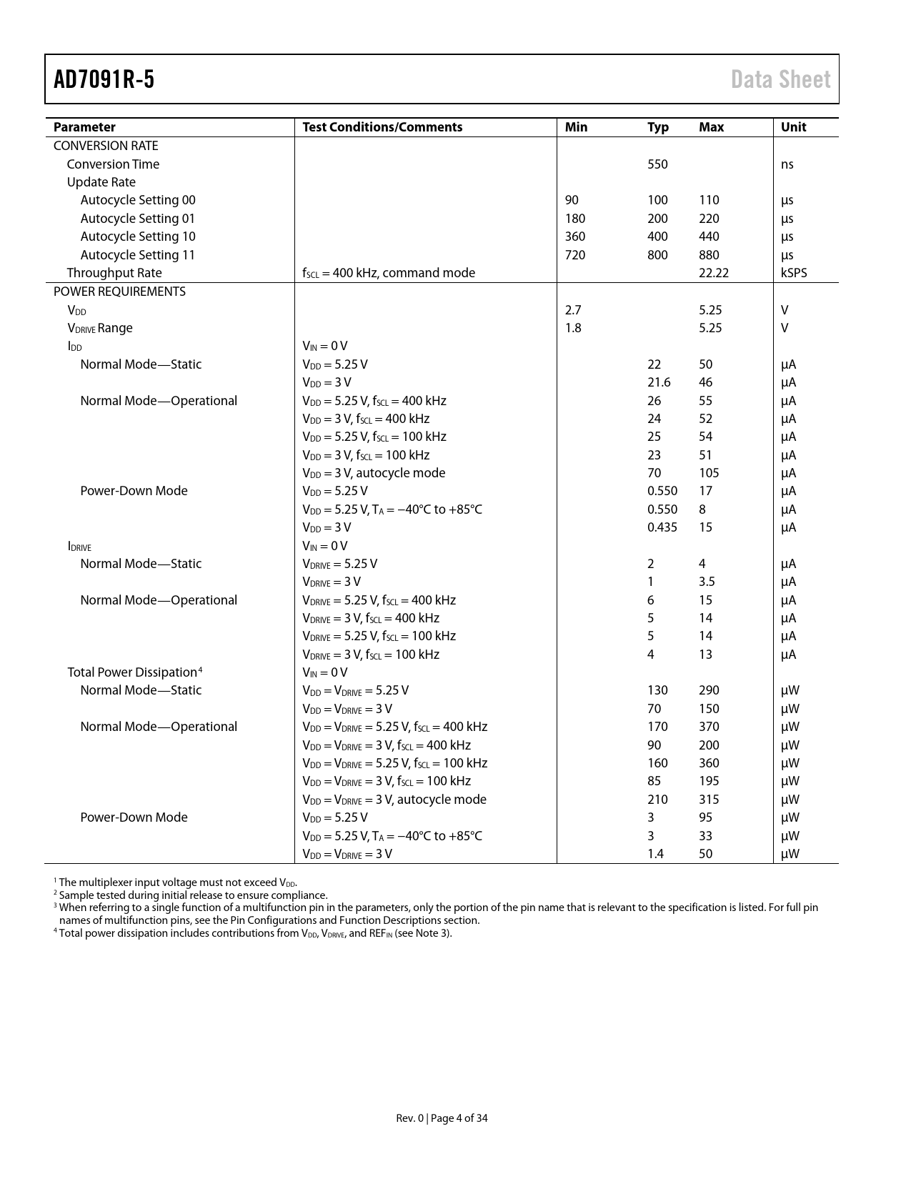 | 页数 / 页 | 35 / 5 — AD7091R-5. Data Sheet. Parameter. Test Conditions/Comments. Min. Typ. … |