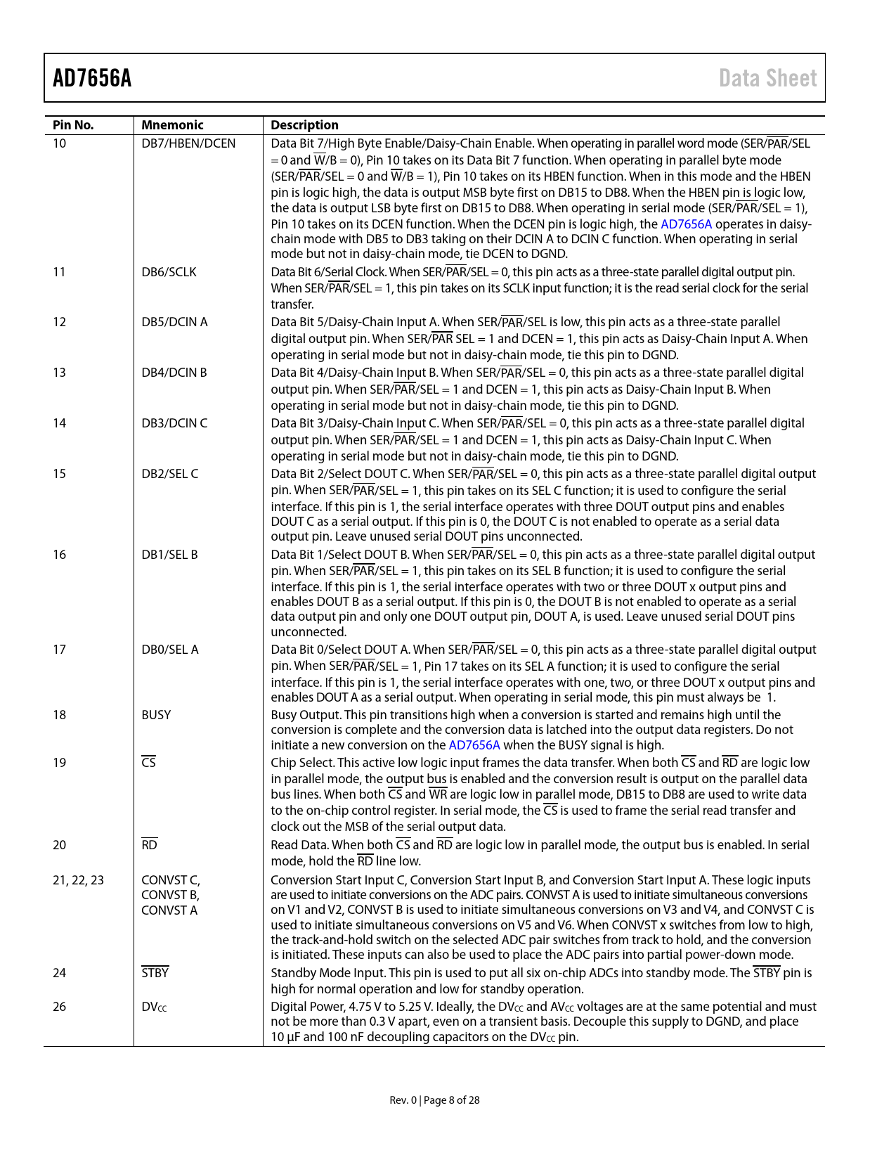 页数 / 页29 / 9 — AD7656A. Data Sheet. Pin No. Mnemonic. Description