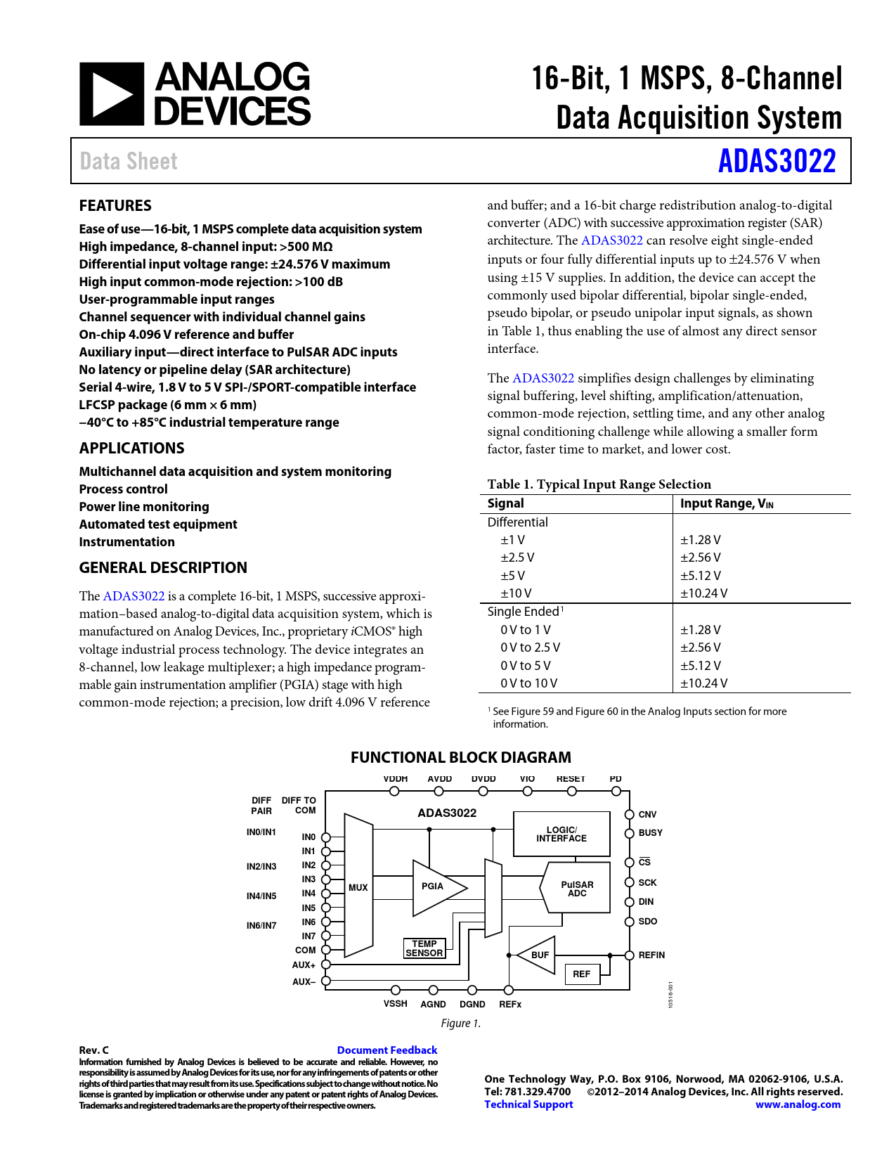 16-Bit, 1 MSPS, 8-Channel. Data Acquisition System. Data Sheet. ADAS3022. FEATURES