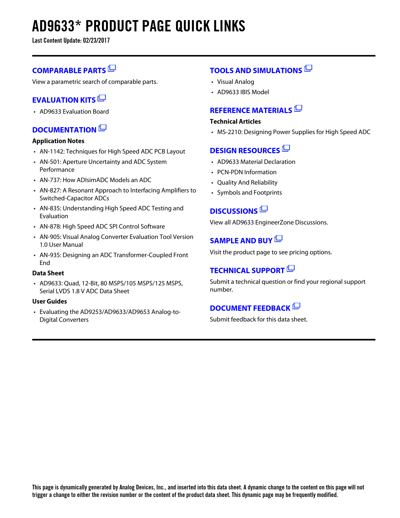 This page is dynamically generated by Analog Devices, Inc., and inserted into this data sheet. A dynamic change to the content on this page will not trigger a change to either the revision number or the content of the product data sheet. This dynamic page may be frequently modified.