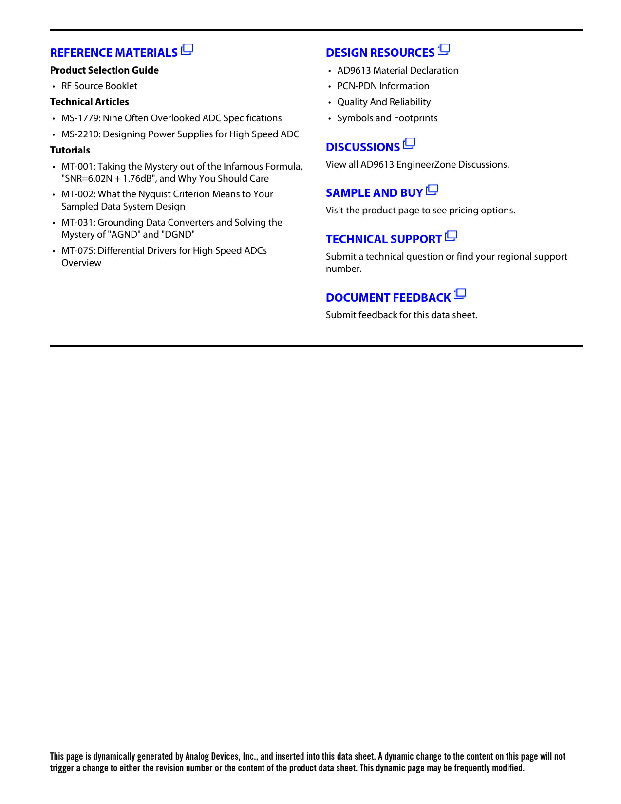 This page is dynamically generated by Analog Devices, Inc., and inserted into this data sheet. A dynamic change to the content on this page will not trigger a change to either the revision number or the content of the product data sheet. This dynamic page may be frequently modified.