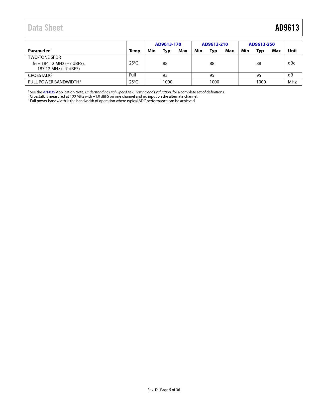 Data Sheet AD9613 AD9613-170 AD9613-210 AD9613-250 Parameter1 Temp Min Typ Max Min Typ Max Min Typ Max Unit