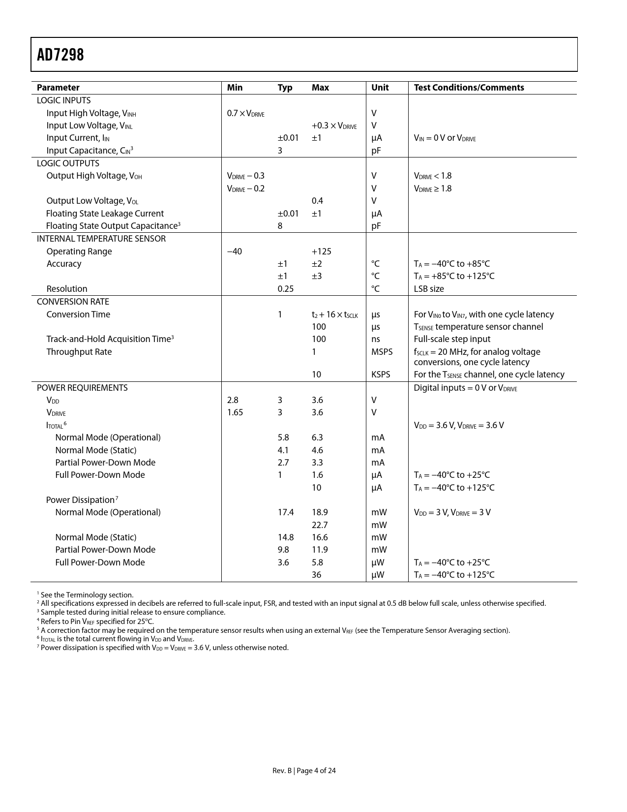 AD7298 Parameter Min Typ Max Unit Test Conditions/Comments