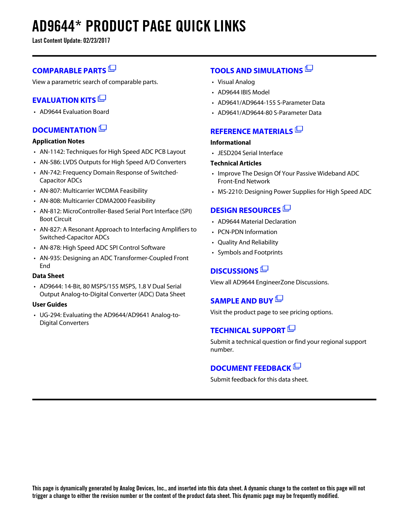 This page is dynamically generated by Analog Devices, Inc., and inserted into this data sheet. A dynamic change to the content on this page will not trigger a change to either the revision number or the content of the product data sheet. This dynamic page may be frequently modified.