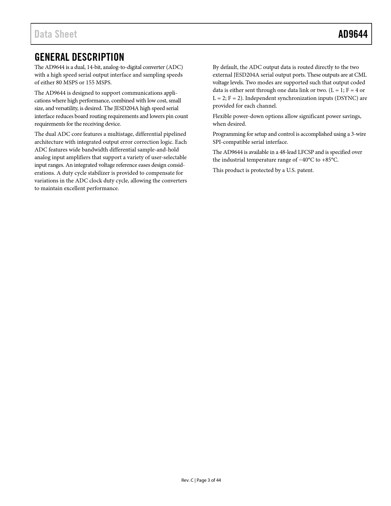 页数 / 页45 / 4 — Data Sheet. AD9644. GENERAL DESCRIPTION