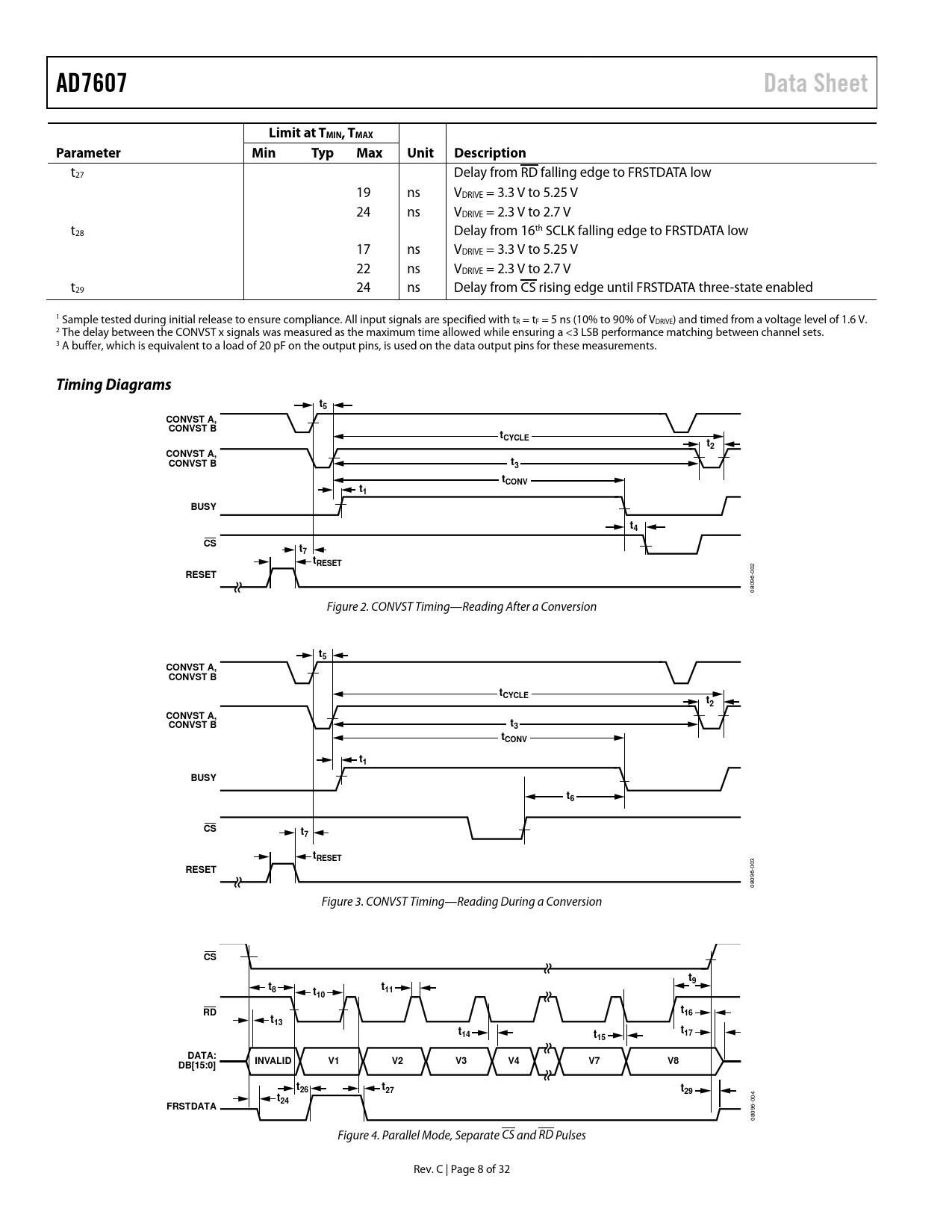 AD7607 Data Sheet Limit at TMIN, TMAX Parameter Min Typ Max Unit Description Timing Diagrams CONVST A, CONVST B tCYCLE tCONV BUSY