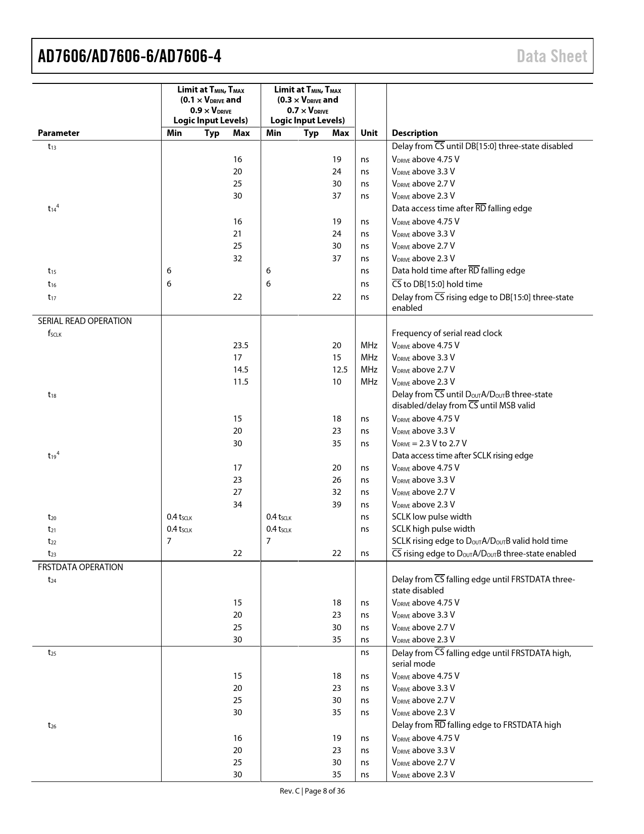 页数 / 页36 / 8 — AD7606/AD7606-6/AD7606-4. Data Sheet. Limit at TMIN, TMAX. (0.1 × VDRIVE …