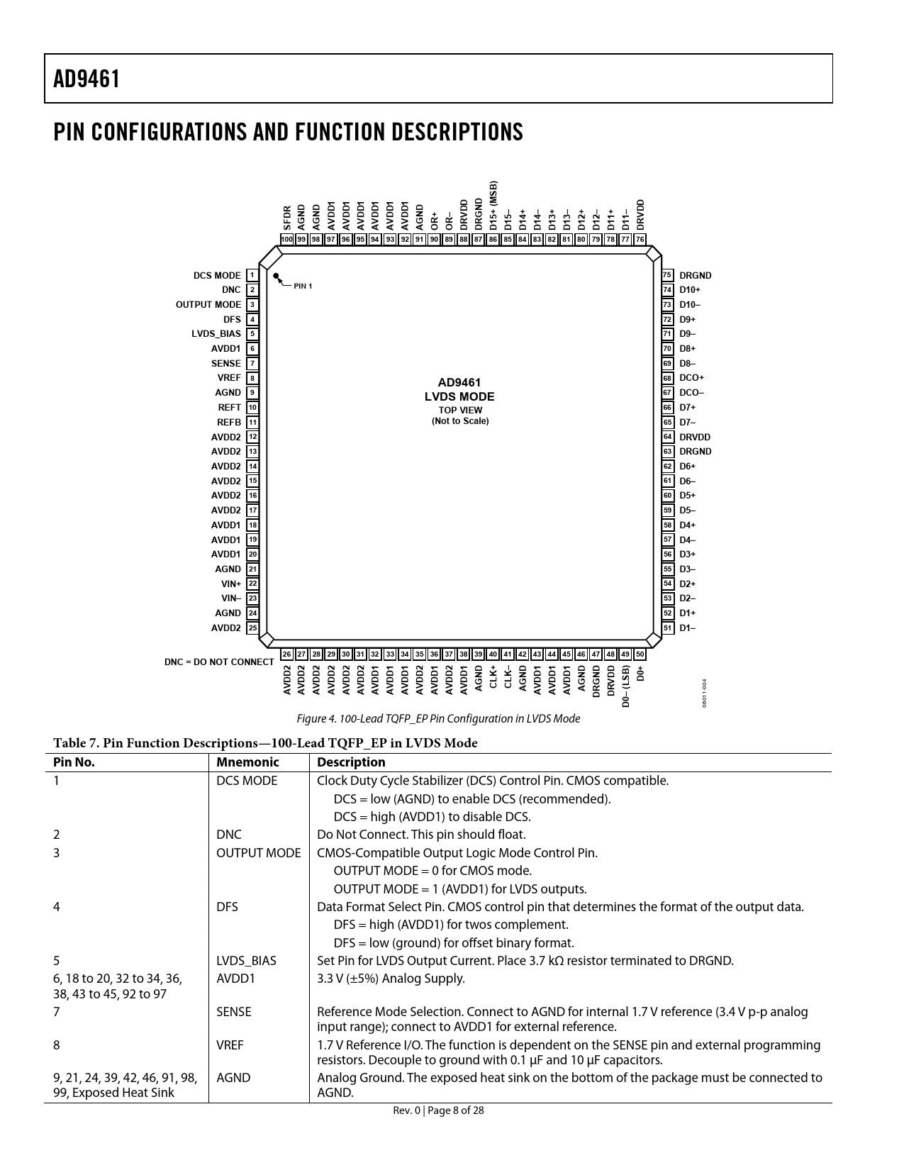Table 7. Pin Function Descriptions—100-Lead TQFP_EP in LVDS Mode Pin No. Mnemonic Description